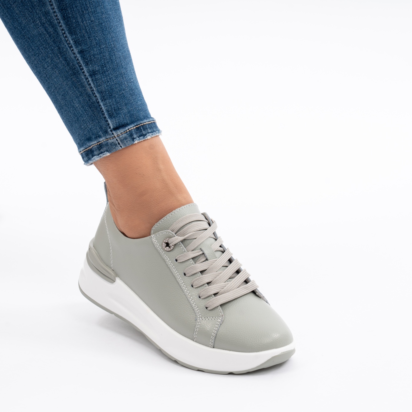 Pantofi Casual Din Piele Naturala Gri AW2023-21