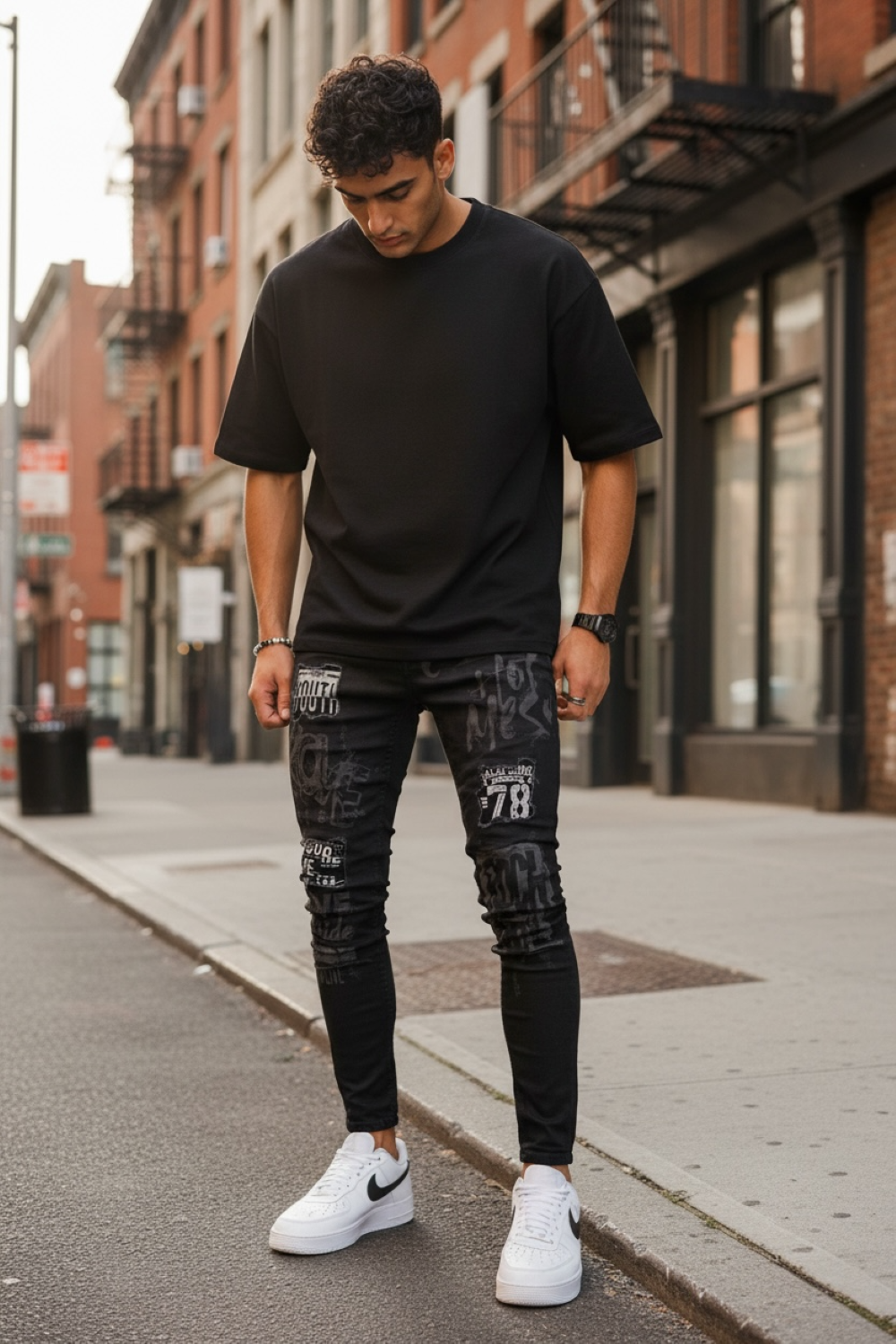 Blugi barbati conici imprimeu si stikere 1253 H1-4