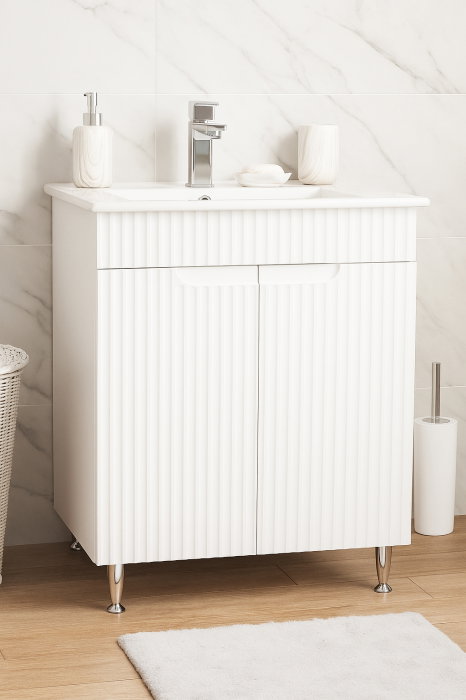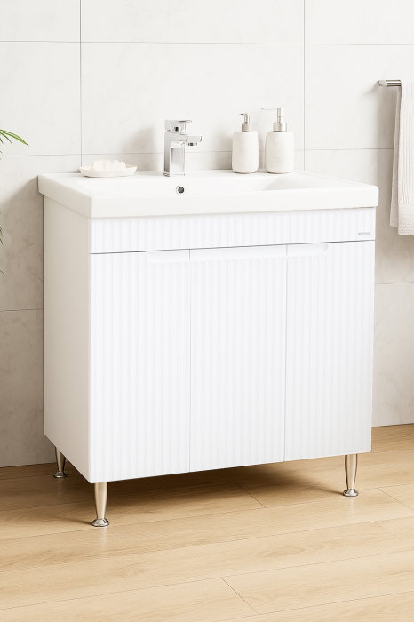 Set Baza front MDF si Lavoar seria 033, montat, 80 cm, alb rustic