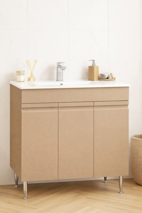 Set Baza front MDF si Lavoar seria 033, montat, 80 cm, crem