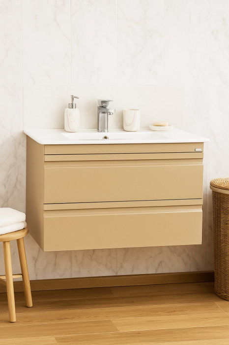 Set Baza front MDF si Lavoar seria 033, cu sertare, montat, 80 cm, crem