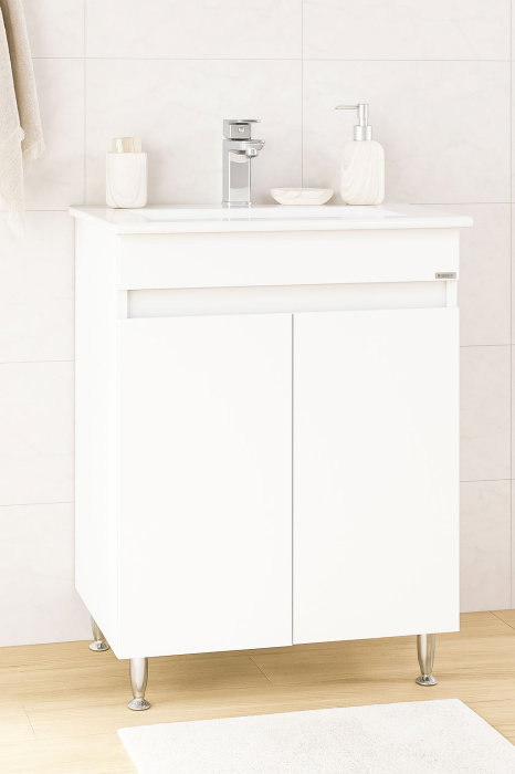 Set Baza front MDF si Lavoar seria 033, montat, 60 cm, alb rustic