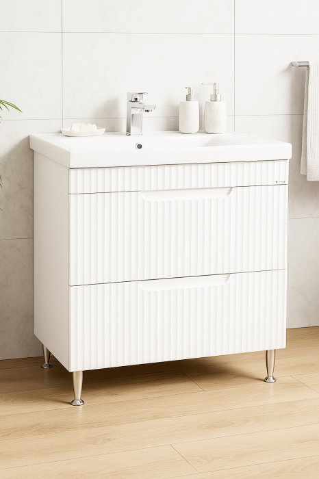 Set Baza front MDF si Lavoar seria 033, cu sertare, montat, 80 cm, alb rustic