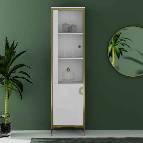 Vitrina Inalta Glamour Alb Si Alb Super Lucios, 49.8 Cm