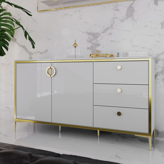 Bufet Mic Glamour Alb Si Alb Super Lucios, 159.2 Cm