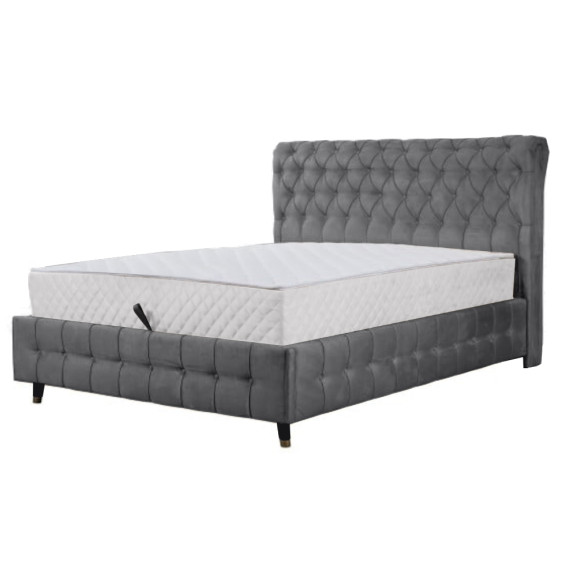 Pat Tapitat Cu Somiera Rabatabila Saint Tropez, Gri inchis, Dimensiune Saltea 180 x 200 Cm