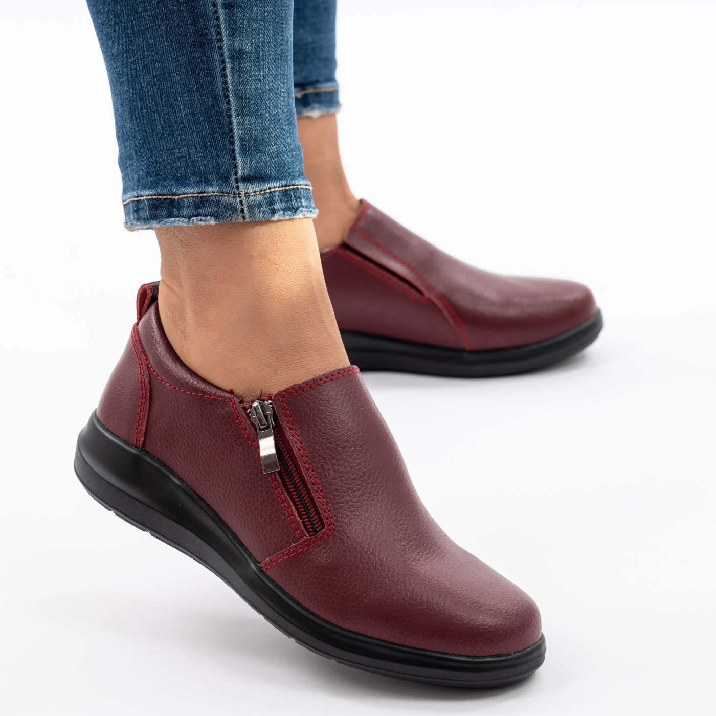 Ghete Piele Naturala Talpa Ortopedica Visiniu 9228