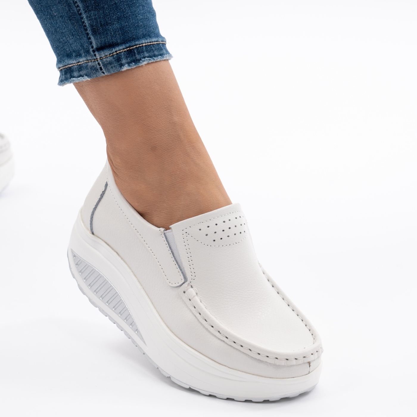 Pantofi Talpa Ortopedica Piele Naturala Alb MM210