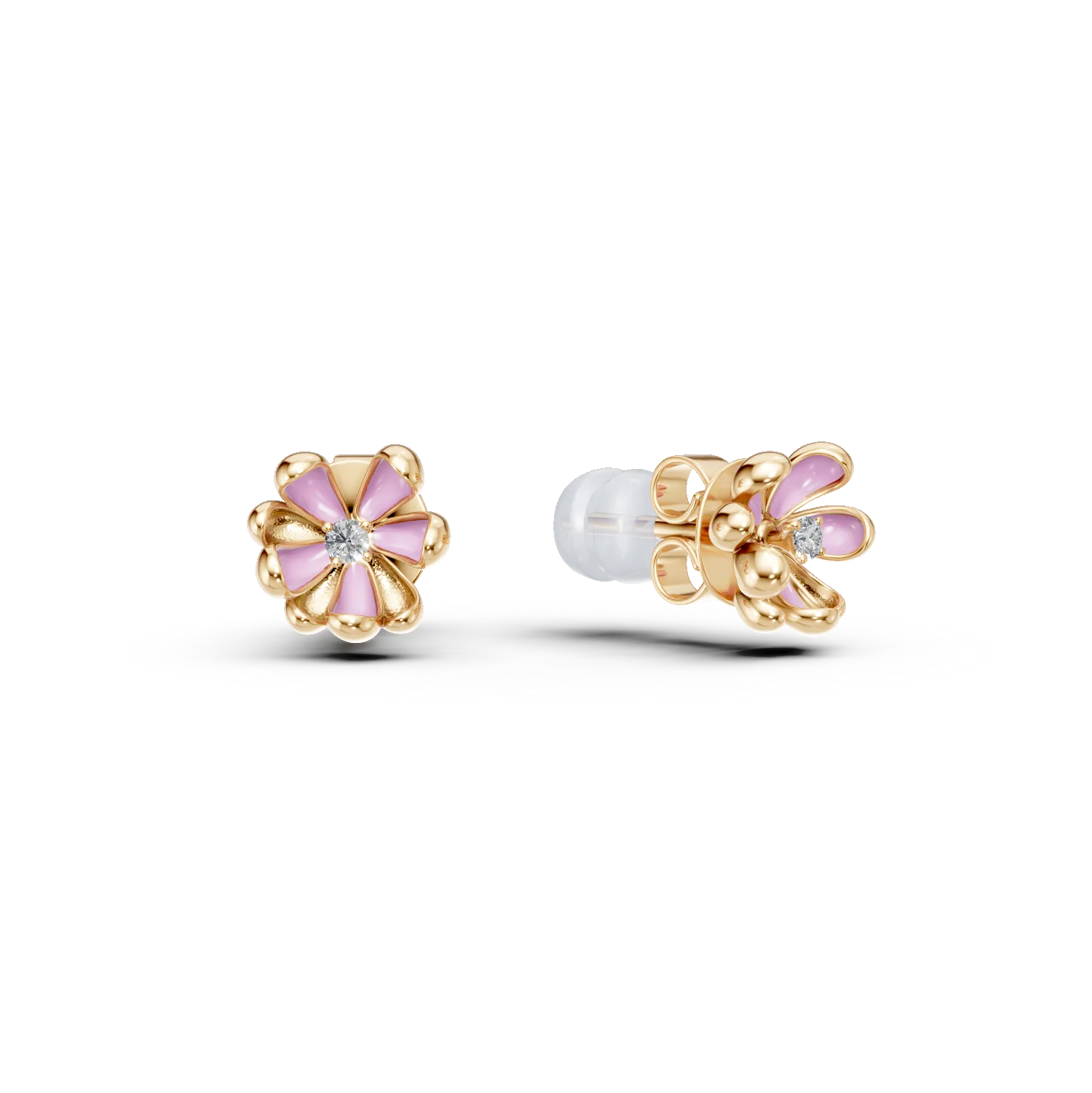 Cercei floare de tei din aur galben cu diamante de 0.02ct pentru copii