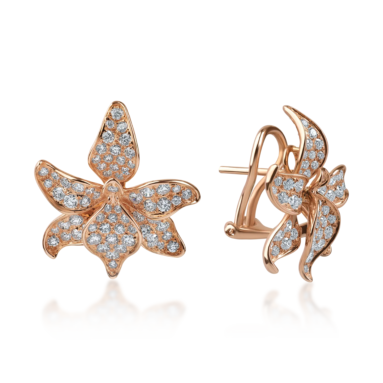 Cercei florali din aur roz cu diamante de 1.7ct