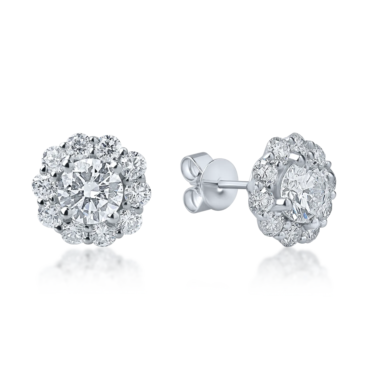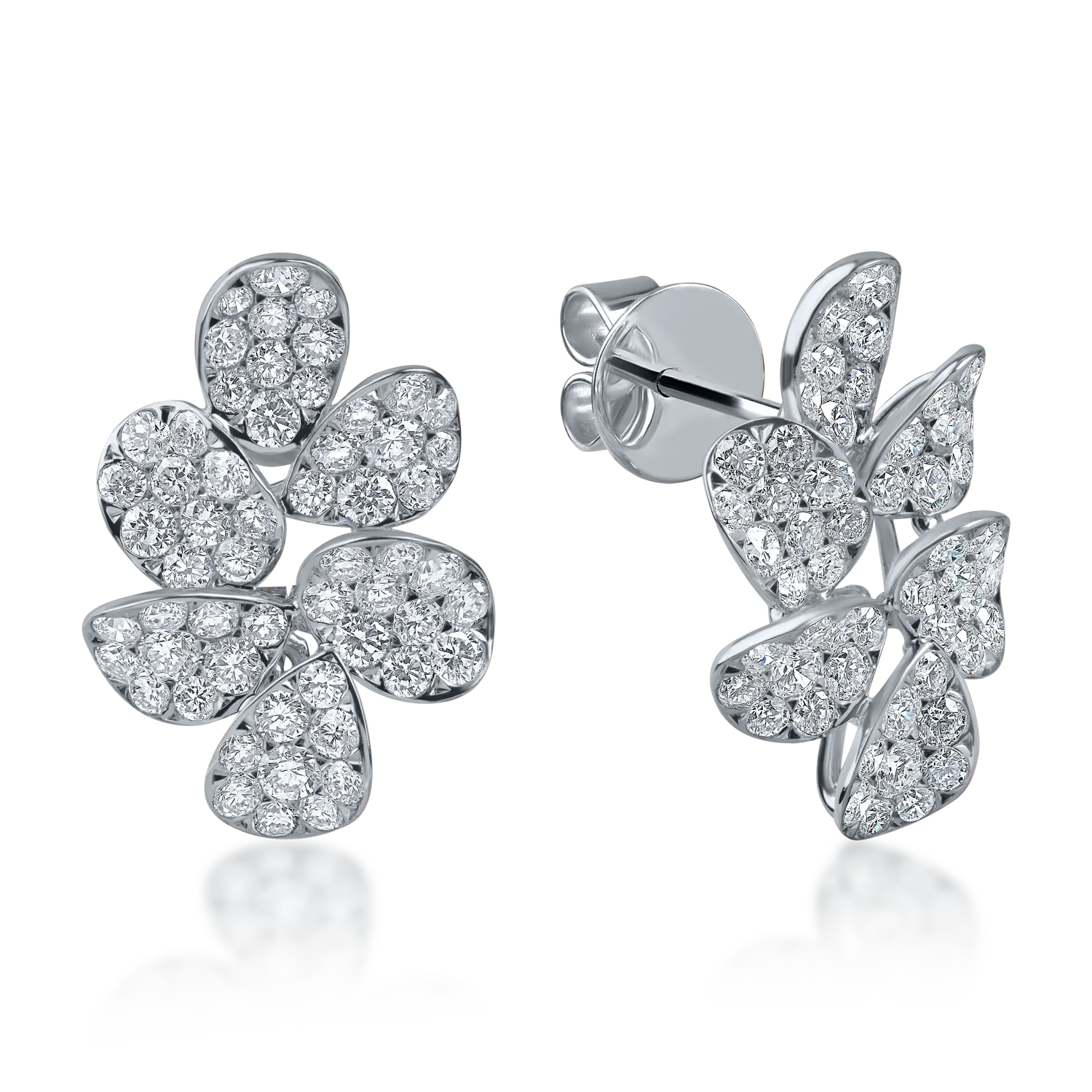 Cercei florali din aur alb cu diamante de 1.4ct