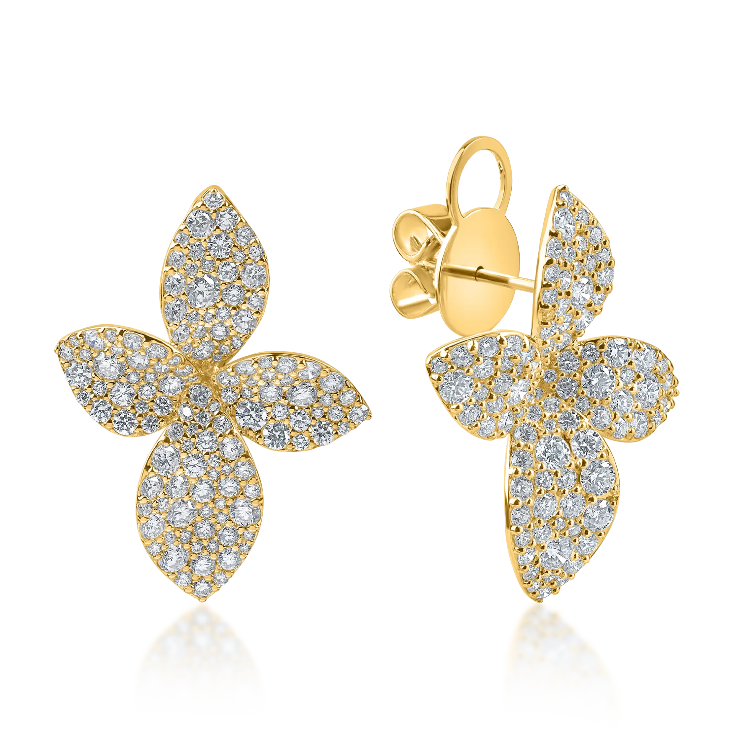 Cercei florali din aur galben cu diamante de 3.06ct