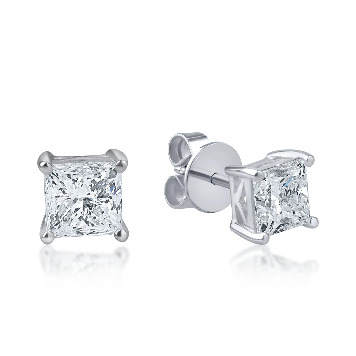 Cercei din aur alb cu diamante princess solitaire de 2.06ct