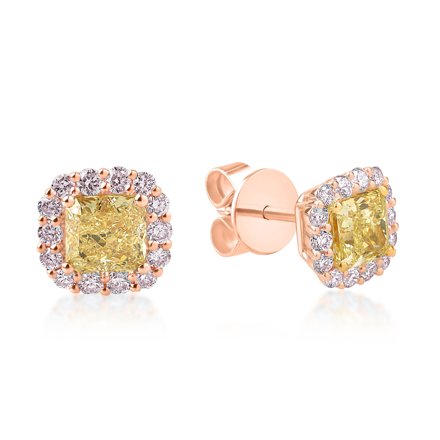 Cercei din aur roz cu diamante galbene cushion de 1.49ct si diamante roz de 0.43ct