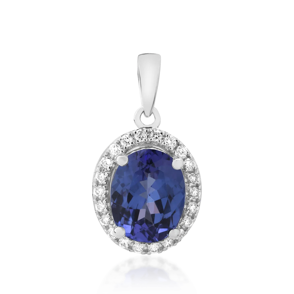 Pandantiv din aur alb cu tanzanit oval de 1.88ct si diamante de 0.15ct
