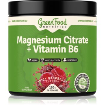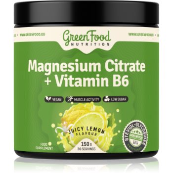 GreenFood Nutrition Magnesium Citrate + Vitamin B6 pulbere pentru susținerea funcționării normale a sistemului nervos, a mușchilor, a dinților și pentru reducerea nivelului de oboseală