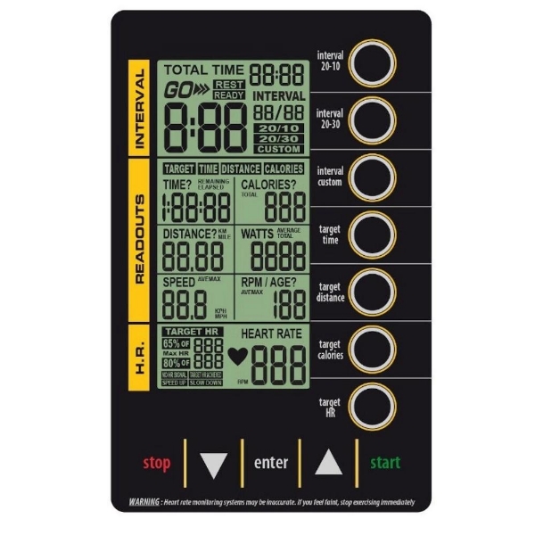 Salter M-280 Air Bike este o bicicletă cardio profesională cu sistem de rezistenţă la aer şi mişcare simultană a braţelor şi picioarelor, ideală pentru antrenamente HIIT şi săli de fitness. Structură ranforsată, greutate maximă utilizator 150 kg. Consolă LCD retro-iluminată cu programe de intervale 20/10, 20/30 şi funcţii target (timp, distanţă, calorii). Performanţă ridicată şi durabilitate în uz comercial. SPECIFICATII TEHNICE - Bicicletă pentru antrenamente de intensitate ridicată.- Dublă mișcare a brațelor și picioarelor.- Sistem de rezistență la aer.- Structură ranforsată pentru exerciții de intensitate ridicată.- Consolă LCD retroiluminată de format mare.- Program manual + 8 programe prestabilite.- 4 programe țintă- 2 programe de intervale prestabilite + 1 program programabil de utilizator.- 2 programe HRC- Receptor de impulsuri fără fir (centura transmițătoare nu este inclusă).- Suport pentru sticle.- Scaun ușor reglabil în înălțime și orizontal.- Roți pentru transport.- Nivelatoare la spate.- Greutatea maximă a utilizatorului: 150 kg.- Dimensiuni: 123x67,5x142 cm.- Greutate: 71,70 kg.- Utilizare comercială