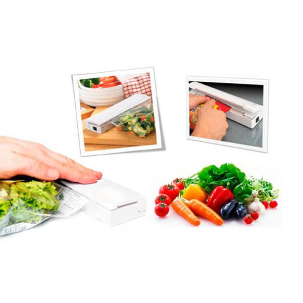 Aparat de sigilat / lipit pungi Reseal & Save Reseal & Save este un aparat de lipit pungi, pentru sigilarea ermetica si etansa a mancarii, obiectelor personale, uneltelor, etc. Cu Reseal & Seal vei sigila si elimina umiditatea si insectele nedorite. Este foarte usor de folosit. Trebuie doar sa pui marginile pungilor de plastic pe banda de incalzire. Apasa pentru cateva secunde si sigiliul este realizat. Functioneaza pe baza de 6 baterii tip AA (neincluse), fara cabluri, care iti permit sa operezi pana la 300 de sigilari. Poate fi pozitionat pe blatul din bucatarie sau, cu ajutorul celor 4 ventuze aflate pe spatele aparatului, poate fi chiar agatat pe dulapuri sau pereti. Este ideal pentru acasa, locul de munca sau camping. Beneficii: vei sigila si elimina umiditatea si insectele nedorite foarte usor de folosit functioneaza cu 6 baterii tip AA (neincluse) nu necesita cabluri Pachetul contine: aparatul Reseal & Save