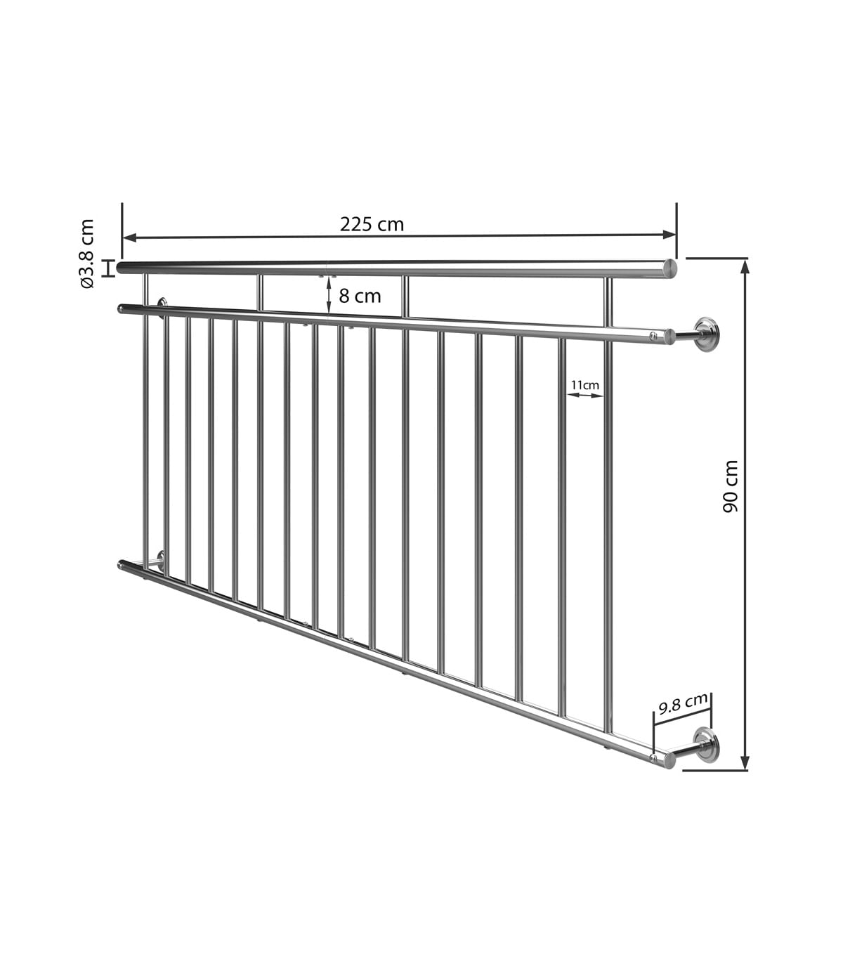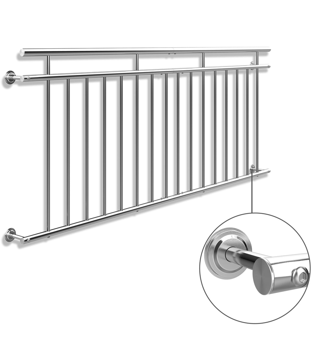 Balustrada franceza balcon din otel inoxidabil 90 x 156 cm/nProtectie impotriva caderii - balustrada de balcon franceza din otel inoxidabil!/nBalustrada eleganta din otel inoxidabil nu numai ca iti imbunatateste geamurile optic dar le ofera si siguranta. Daca in apartament locuiesc copii varstnici sau animale un parapet de fereastra poate oferi protectie./nBalustradele franceze de balcon sunt disponibile in 5 dimensiuni astfel incat balustrada potrivita sa fie inclusa si pentru fereastra dvs./nBalustrada si capetele tevii sunt inchise numarul de bare transversale variaza in functie de dimensiune. Barele sunt la 11 cm distanta./nAvantaje produs:/n• Din otel inoxidabil/n• Cu balustrada/n• Locuiti ca la Paris cu balustrada balconului francez/n• Balustrada si capetele tevii sunt inchise/n• Inclusiv instructiuni de asamblare/nSpecificatii produs:/n• Dimensiuni: 90 x 156 cm = latime maxima a ferestrei / usii: 142 cm (Inaltime x Lungime)/n• Diametru balustrada: 38 cm/n• Diametru tub inferior/tub superior: 32 cm/n• Diametru teava bare de umplere: 19 cm/n• Material: otel inoxidabil/n• Culoare: argintiu/nContinut colet:/n• 1 x Balustrada franceza de balcon 90 x 156 cm/n• Instructiuni de asamblare