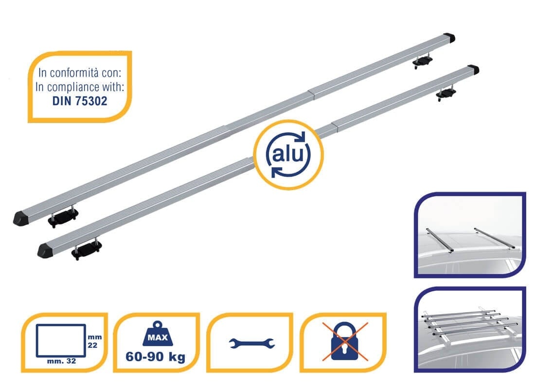 Bare portbagaj auto K39 Rapid compatibile cu Daewoo Rezzo 2000-2008 Pentru momentele cand ai nevoie de un accesoriu auto pentru transport alege barele transversale K39 Rapid! Barele auto de la K39 sunt confectionate din aluminiu rezistent si se monteaza pe barele longitudinale ale masinii tale. Barele transversale K39 se prind de barele longitudinale ale autoturismului, sunt telescopice si includ sisteme de prindere tip U ce se ataseaza de barele longitudinale inaltate ale autoturismului tau. Sistemul de bare contine: - 2 x Bare portbagaj din aluminiu telescopice - 4 x Sisteme de prindere pe barele longitudinale Specificatii tehnice: - Lungime bara: 1350 mm - Inaltime bara: 22 mm - Latime bara: 32 mm - Greutate: 2 kg - Material: aluminiu - Canal pe toata lungimea barei: NU - Sistem antifurt: Nu - Capacitate maxima de transport: 90 kg - Testate DIN 75302 Filmuletele si pozele sunt cu titlu de prezentare. Pentru in montaj corect si rapid, folositi manualul de instructiuni inclus in pachet. Greutatea maxima de incarcare poate sa fie diferita in functie de marca si modelul masinii. Consultati caracteristicile tehnice date de producatorul autoturismului.