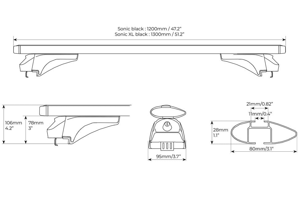 Bare transversale portbagaj Menabo Sonic Black compatibile cu Hyundai Tucson (NX4) 2020+ Bare transversale din aluminiu Menabo Sonic Black va ofera o flexibilitate sporita in transportarea bagajelor datorita capacitatii de incarcare de 75 kg, dar si a canalului standard pentru prindere cu profil T a diferitelor accesorii. Barele au sectiune aerodinamica de 8 cmsi se potrivesc pentru toate tipurile de portbagaje (cutii portbagaj, suport bicicleta, suport schi, portbagaj caiac/canoe, etc.). Profilul aerodinamic in forma de aripa al barelor transversale ajuta la minimalizarea zgomotului si reduce rezistenta aerodinamica. Setul de bare transversale cuprinde toate elementele necesare pentru montarea pe barele longitudinale de tip sina (integrate) ale autoturismului. Sistemul de bare portbagaj cuprinde: - 2 x Bare transversale din aluminiu - 4 x Sisteme de prindere pe barele longitudinale - 4 x Sisteme antifurt + Chei - 1 x Cheie imbus (nu este necesara o alta unealta) Specificatii tehnice: - Lungime bara: 1200 mm - Inaltime bara: 30 mm - Latime bara: 80 mm - Greutate sistem: 4.8 kg - Material: aluminiu - Canal 20 mm pentru prindere T pe toata lungimea barei - Sistem antifurt: Da - Capacitate maxima incarcare: 75 kg - Aprobate TUV & ISO/PAS 11154:2006 Video montaj Menabo Sonic Filmuletele si pozele sunt cu titlu de prezentare. Pentru in montaj corect si rapid, folositi manualul de instructiuni inclus in pachet. Greutatea maxima de incarcare poate sa fie diferita in functie de marca si modelul masinii. Consultati caracteristicile tehnice date de producatorul autoturismului.