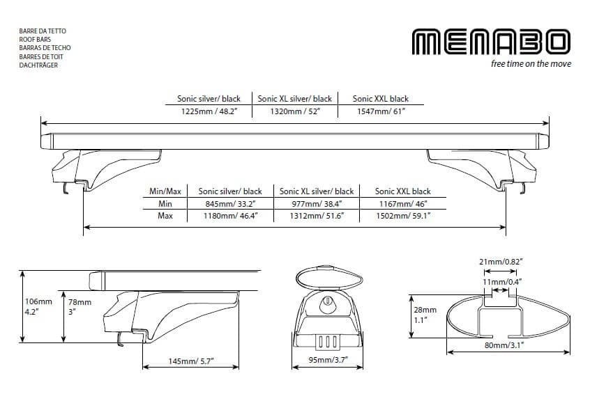 Bare transversale portbagaj Menabo Sonic Silver compatibile cu Kia X-Ceed (CD) 2019+ Bare transversale din aluminiu Menabo Sonic Silver va ofera o flexibilitate sporita in transportarea bagajelor datorita capacitatii de incarcare de 75 kg, dar si a canalului standard pentru prindere cu profil T a diferitelor accesorii. Barele au sectiune aerodinamica de 8 cmsi se potrivesc pentru toate tipurile de portbagaje (cutii portbagaj, suport bicicleta, suport schi, portbagaj caiac/canoe, etc.). Profilul aerodinamic in forma de aripa al barelor transversale ajuta la minimalizarea zgomotului si reduce rezistenta aerodinamica. Setul de bare transversale cuprinde toate elementele necesare pentru montarea pe barele longitudinale de tip sina (integrate) ale autoturismului. Sistemul de bare portbagaj cuprinde: - 2 x Bare transversale din aluminiu - 4 x Sisteme de prindere pe barele longitudinale - 4 x Sisteme antifurt + Chei - 1 x Cheie imbus (nu este necesara o alta unealta) Specificatii tehnice: - Lungime bara: 1200 mm - Inaltime bara: 30 mm - Latime bara: 80 mm - Greutate sistem: 4.8 kg - Material: aluminiu - Canal 20 mm pentru prindere T pe toata lungimea barei - Sistem antifurt: Da - Capacitate maxima incarcare: 75 kg - Aprobate TUV & ISO/PAS 11154:2006 Video montaj Menabo Sonic Filmuletele si pozele sunt cu titlu de prezentare. Pentru in montaj corect si rapid, folositi manualul de instructiuni inclus in pachet. Greutatea maxima de incarcare poate sa fie diferita in functie de marca si modelul masinii. Consultati caracteristicile tehnice date de producatorul autoturismului.
