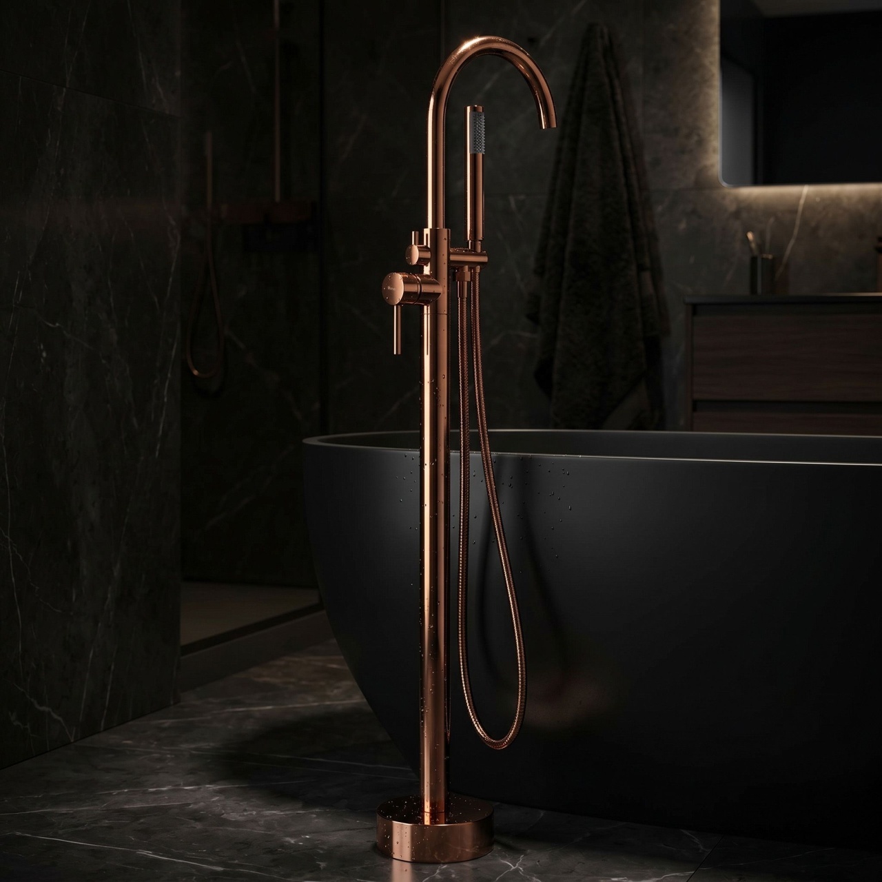 Bateria de cadă stativă Lungo în culoarea magnetizantă a cuprului (Copper) este chintesența luxului și a designului modern. Silueta sa zveltă și înaltă, combinată cu strălucirea caldă a cuprului, oferă oricărei căzi de sine stătătoare un cadru prestigios.Finisaj nobil de cupru – luciul intens în nuanța cuprului aduce în interior o căldură deosebită și o strălucire prețioasă.Tehnologie Electroplating – metoda avansată de aplicare a stratului galvanic garantează o suprafață perfect netedă, culoare uniformă și protecție împotriva coroziunii.Linia minimalistă Lungo – corpul cilindric cu formă geometrică curată subliniază caracterul modern și facilitează întreținerea.Funcționalitate completă – echipată cu un comutator intuitiv pentru schimbarea rapidă a fluxului între pipă și para de duș ergonomică.Pară de duș confortabilă – inclusă în set, cu furtun flexibil în nuanță asortată.Componente fiabile – cartușul ceramic de înaltă calitate asigură reglarea fluidă a temperaturii și debitului de apă.Construcție din alamă Premium – corpul din alamă solidă garantează stabilitatea montajului pe podea și durabilitatea mecanică. Tip baterie: de cada Metodă de montaj: Montată pe podea Culoare: Cupru Tip de gura de scurgere: Mobilă Material: Alamă Lungimea gurii: 210 Inalime: 1110 Tehnologia de acoperire: PVD Diametru pentru conectare: 19 mm Garantie: 5 ani