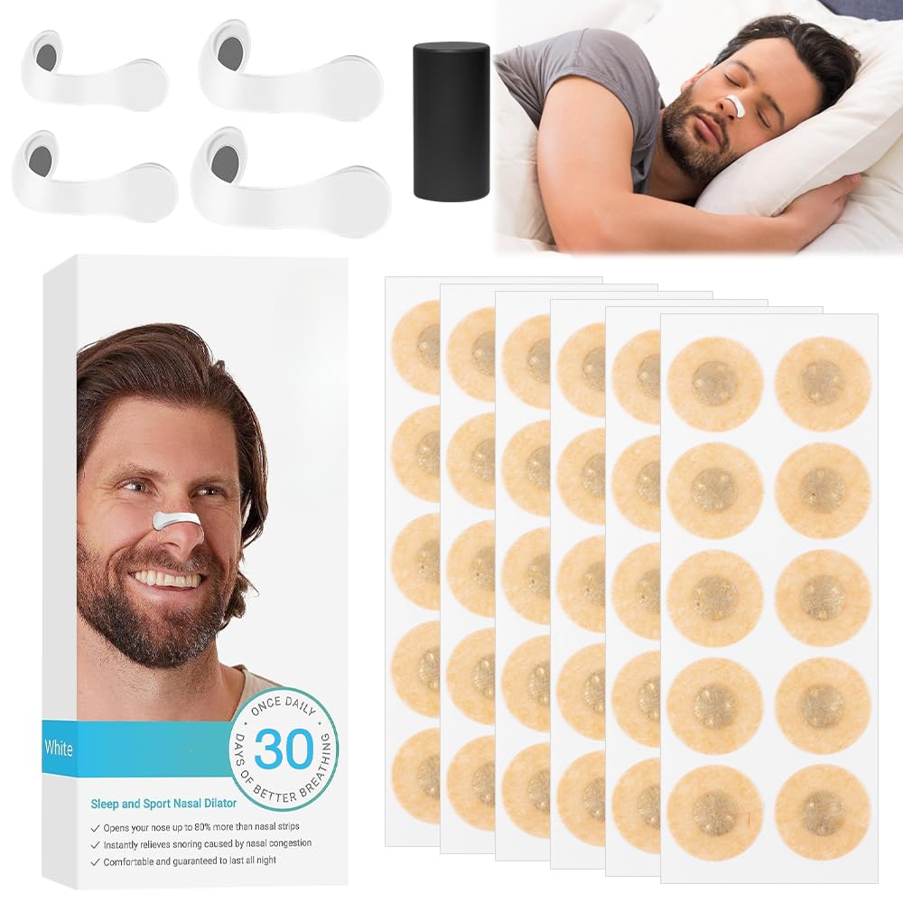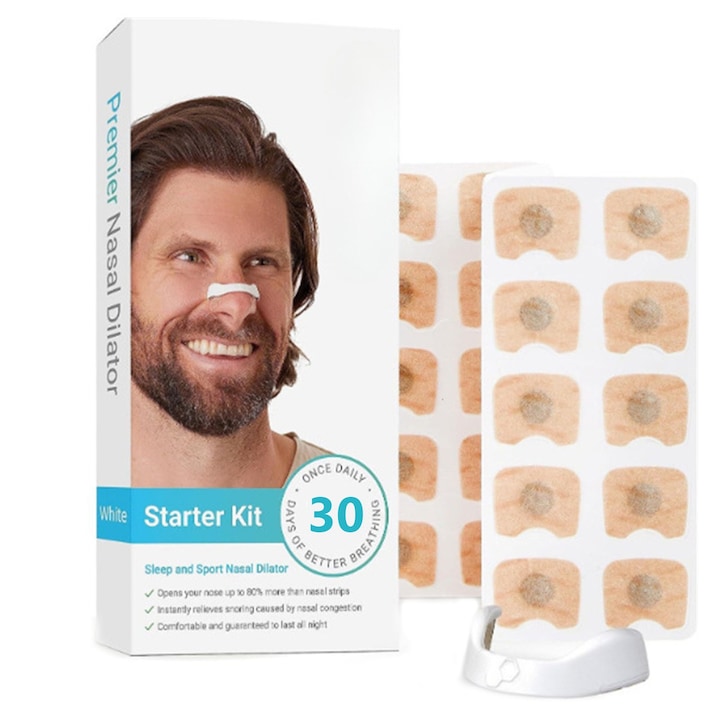 Benzi nazale magnetice antisforait Material: ABS + magnet Culoare: Alb 30 bucati Pachetul include: 4 Dilatatoare nazale 1 Aplicator magnetic 30 Autocolante pentru nas Spre deosebire de benzile nazale clasice pentru sforait, banda de relief este purtata la exterior si ofera o usurare fara a te baza pe puntea nasului pentru sustinere. Aceasta abordare asigura o experienta mai confortabila pentru utilizator, oferind in acelasi timp o usurare mai eficienta si de durata decat benzile nazale clasice si decongestionantele cu spray nazal. Dilatatoarele nazale sunt un dispozitiv anti sforait sigur si eficient pentru a creste aportul de oxigen si pentru a ajuta la ameliorarea congestiei nazale. Reduceti sforaitul si imbunatatiti calitatea somnului atat pentru dvs., cat si pentru partenerul dvs. Reduceti stresul si cresteti nivelul de energie pentru a va imbunatati performanta atletica sau pur si simplu simtiti-va mai plin de energie pe parcursul zilei. Dilatatorul nazal antisforait este un dispozitiv destinat sa imbunatateasca respiratia si sa reduca sforaitul prin dilatarea cailor nazale. Iata cateva caracteristici importante ale produsului pe care l-ai mentionat: Marire a Capacitatii Respiratorii: Dilatatoarele nazale ajuta la largirea cailor nazale, facilitand trecerea aerului si, astfel, imbunatatind oxigenarea. Asistenta pentru Devierea de Sept: Acest dispozitiv poate fi benefic pentru persoanele care au o deviere de sept nazal, ajutand la ameliorarea congestiei. Impermeabil: Acest aspect face ca dilatatoarele sa fie usor de utilizat, chiar si in conditii de umiditate, fara a fi afectate. Greutate Reduca: Designul usor asigura ca utilizatorul nu va simti disconfort in timpul purtarii. Fabricate din materiale moi, dilatatoarele nazale sunt concepute pentru a oferi o experienta placuta pe parcursul noptii sau in timpul utilizarii de zi cu zi. Acest tip de dilatator nazal poate fi o solutie eficienta pentru persoanele care se confrunta cu sforaitul sau dificultati respiratorii. Daca problema persista, este recomandat sa consultati un specialist medical pentru evaluari suplimentare.