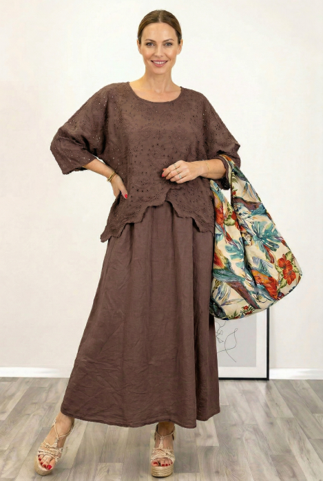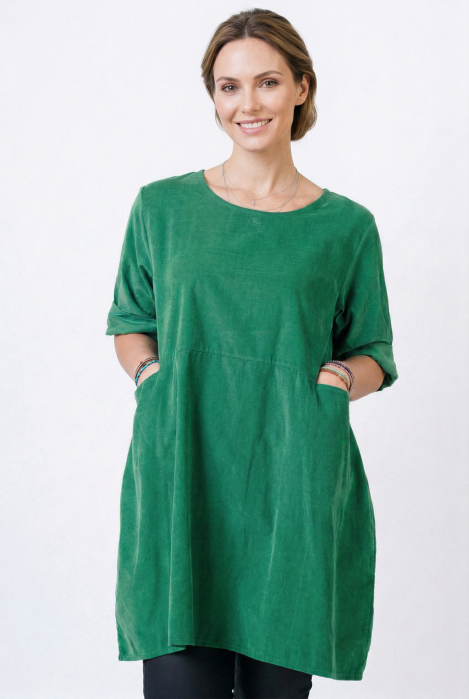 Are decolteu barcuta Fara maneci Este mai scurta in fata decat in spate Este evazata, ampla Are talie unica si este potrivita pentru masurile S, M, L, XL Material: 95% bumbac, 5% elastan Dimensiuni: bust 104 cm, lungime 64-80 cm (fata...
