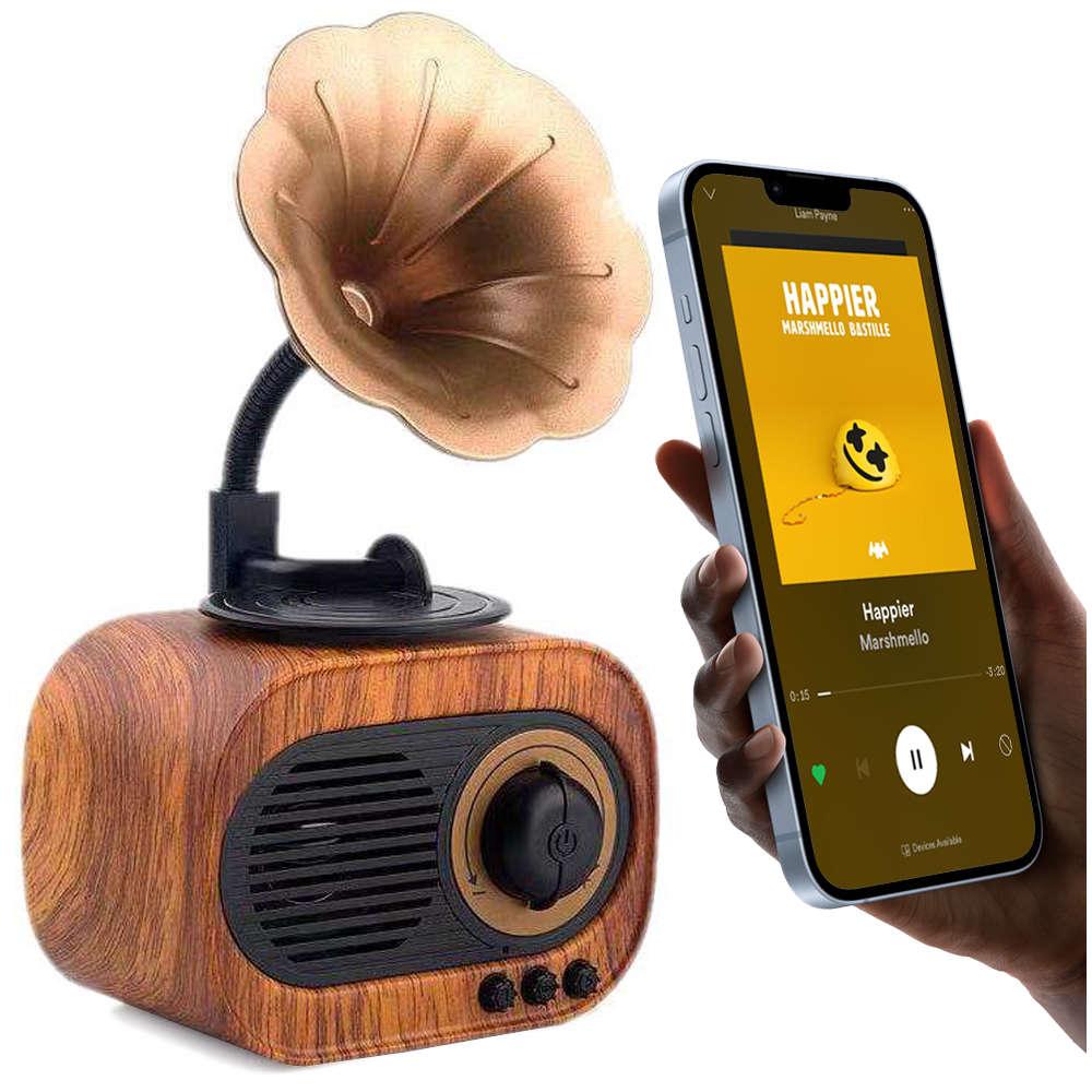 Boxa Retro Gramofon Bluetooth, USB/TF, Baterie 1200 MAh Putere: 5 W Tip: difuzor BT Metoda de conectare: Bluetooth V4.0 Raportul semnal-zgomot: ≥75dB Mod de alimentare: baterie cu litiu incorporata (reincarcabila) Mod de functionare: butoane Material: ABS Culoare: lemn deschis Mod de alimentare: USB Functie: BT/TF/USB/AUX Dimensiuni aproximative 10.5 x 21 cm Boxa Portabila Retro Maro, un dispozitiv compact si versatil care aduce impreuna stilul retro si tehnologia moderna pentru o experienta muzicala uimitoare oriunde te-ai afla. Designul sau clasic, intr-un ton maro elegant, evoca farmecul vremurilor trecute, aducand o nota de nostalgie si rafinament in orice incapere sau calatorie. Cu dimensiuni portabile si un maner convenabil, aceasta boxa este usor de transportat si de utilizat in diverse situatii, de la petreceri in aer liber pana la plimbari la malul marii. Conectivitatea Bluetooth iti permite sa te bucuri de muzica fara fir, redandu-ti playlist-ul preferat de pe smartphone, tableta sau laptop. Poti sa te conectezi rapid si usor, fara a fi nevoie de cabluri sau incurcaturi. De asemenea, boxa are sloturi USB si TF pentru redarea muzicii de pe dispozitive de stocare externe, cum ar fi stick-uri USB sau carduri de memorie. Bateria incorporata de 1200 mAh ofera o durata de redare generoasa, astfel incat sa te poti bucura de muzica non-stop, fie ca esti acasa sau in miscare. Aceasta boxa portabila iti permite sa creezi o atmosfera plina de energie si veselie oriunde mergi, fiind un companion perfect pentru petreceri sau excursii in aer liber. Cu un sunet de calitate si claritate remarcabila, boxa portabila retro te va impresiona cu performanta sa audio. Indiferent daca asculti muzica, urmaresti filme sau te bucuri de audiobook-uri, sunetul sau plin si echilibrat creeaza o experienta imersiva si captivanta. Experimenteaza basul profund si notele inalte cristaline pentru o auditie de exceptie. Fabricata din materiale durabile si rezistente, boxa portabila retro este conceputa pentru a rezista in timp si a face fata uzurii cotidiene. Constructia sa solida asigura o rezistenta sporita la socuri si caderi accidentale, fiind perfecta pentru utilizare in calatorii si aventuri in aer liber. In concluzie, Boxa Portabila Retro Maro ofera o combinatie de farmec retro si tehnologie moderna. Cu conectivitate Bluetooth, redare de pe USB si TF, baterie puternica si sunet remarcabil, aceasta boxa te va insoti in calatorii muzicale memorabile. Bucura-te de muzica de calitate si stil retro cu Boxa Portabila Retro Maro - companionul perfect pentru a-ti impartasi pasiunea pentru muzica oriunde te-ai afla. Se conecteaza rapid prin Bluetooth si tot ce trebuie sa mai faci este sa iti pregatesti un playlist, fiindca dupa o incarcare completa, Boxa portabila Retro Pickup va putea activa intre 4 si 6 ore.