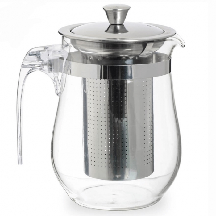 Ceainic din sticla cu infuzor, capacitate 750 ml Acest infuzor reprezinta varianta ideala pentru prepararea usoara si rapida a unui ceai gustos si sanatos. Cana din sticla este foarte usor de utilizat, cu sita inovatoare din otel inoxidabil de inalta calitate. Distributia precisa si stiintifica a orificiilor filtrului poate filtra eficient resturile fine de ceai. Rezervorul interior este proiectat pentru a fi separabil si durabil. Filtrul este usor de dezasamblat, curatat si nu se blocheaza. Ceainic din sticla cu infuzor Capacitate cana: 750 ml Poate fi folosit atat cu ceai vrac cat si cu plicuri