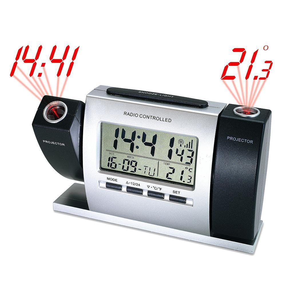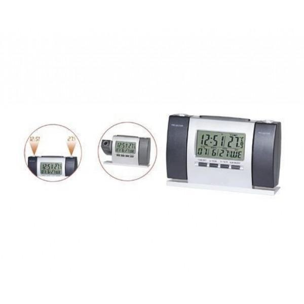 Ceas multifunctional cu proiectie pe tavan ora si temperatura Ceas de camera cu functii multiple, afisaj LCD, doua proiectoare si design modern. Ceas cu data si proiectie La o apasare de buton proiecteaza ora si temperatura timp de cateva secunde Alarma cu functie snooze Posibilitate selectare mod de afisare temperatura: grade celsius sau fahrenheit Ecran monochrom Functie de proiectare ora si temperatura pe perete sau tavan, unghi reglabil, doua proiectoare Functioneaza cu doua baterii AA Dimensiuni: 15 x 11 x 6 cm