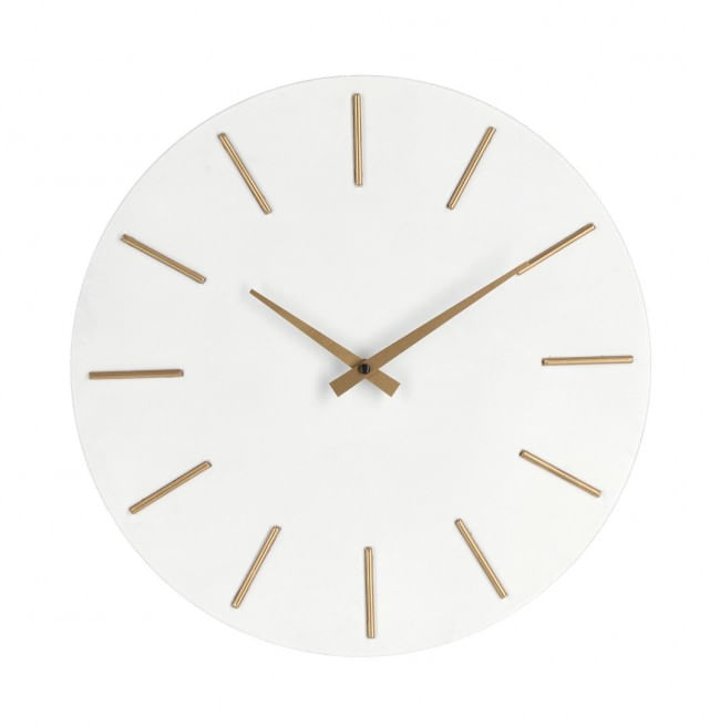 Material: MDF / Otel Dimensiuni: Diametru 40 cm x Latime 5 cm Culoare: Alb / Auriu Functioneaza cu o baterie AA (nu este inclusa). Va prezentam o superba piesa decorativa, sub forma acestui ceas de perete realmente spectaculos. Este realizat din mdf si otel de buna calitate, ceea ce il face perfect pentru holul, camera de zi sau biroul dumneavoastra. Este disponibil in nuante delicate de alb si auriu, ceea ce va adauga o nota de clasa oricarui spatiu. Dimensiunea sa generoasa este ideala pentru orice incapere, iar stilul sau modern va completa armonios orice decor. Suspendati aceasta capodopera in casa dumneavoastra si bucurati-va de precizia sa pentru multi ani de acum incolo!