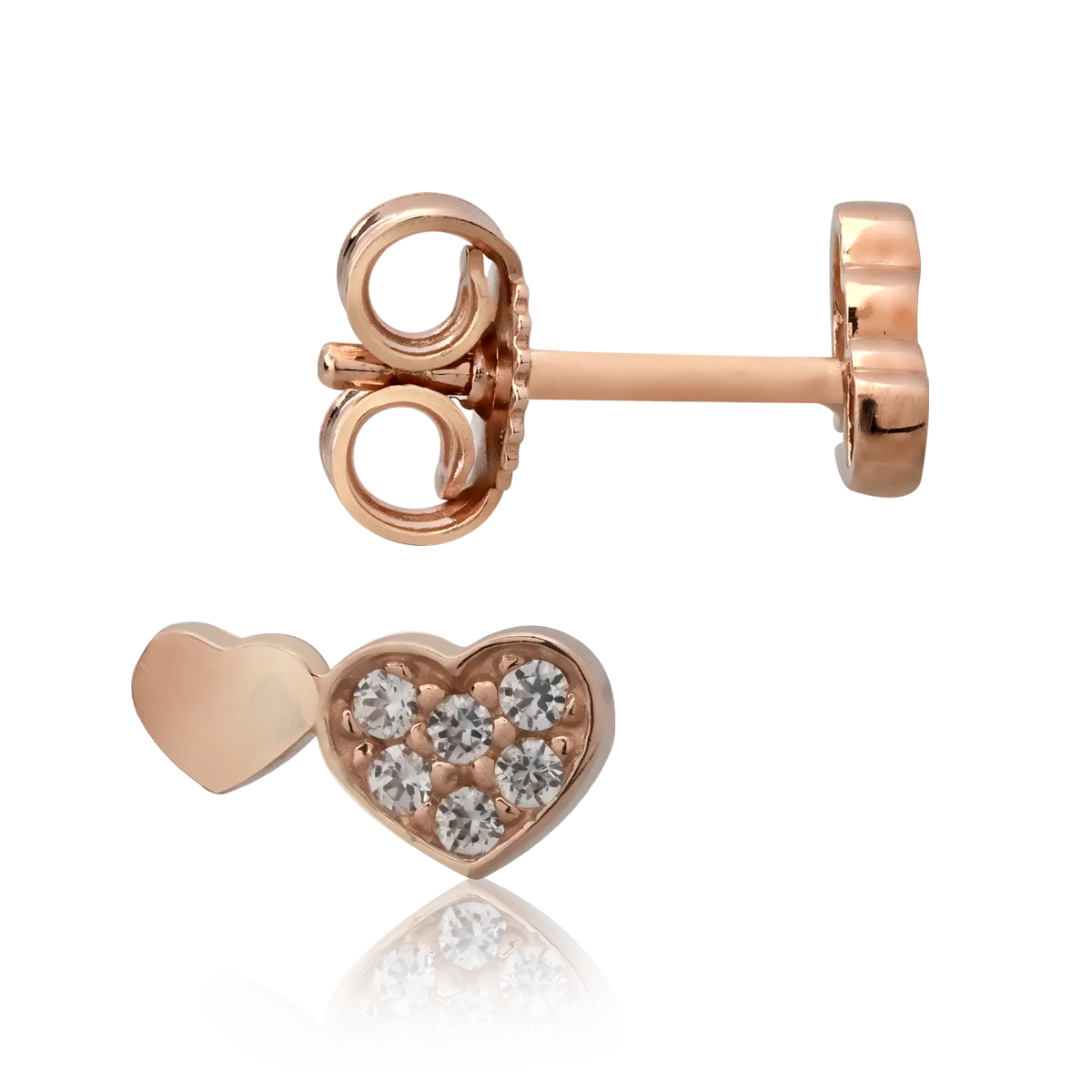 Intotdeauna originala, mereu surprinzatoare - TU. Cu un design atemporal, cerceii cu inimioare din aur roz sunt accesoriul principal in conturarea unei tinute elegante. O piesa pe care iti doresti sa o porti iar si iar. Alege sa iti fie sursa de inspiratie.