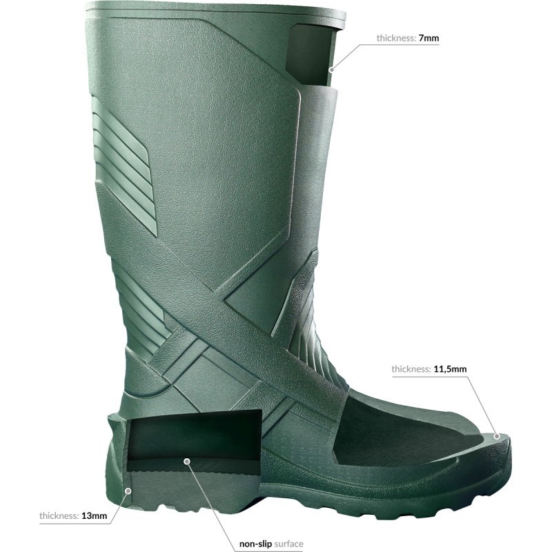 Dry Walker Vtrack Tower Collars –50°C sunt cizme premium din EVA 100% , concepute pentru pescari, vânători și persoane care lucrează sau circulă pe terenuri dificile în sezonul rece. Extrem de ușoare (aprox. 350–375 g) , complet impermeabile și foarte călduroase , oferă protecție superioară în zăpadă, noroi și temperaturi scăzute de până la –50°C . Datorită materialului EVA de calitate superioară, cizmele sunt flexibile , rezistente la șocuri și au o talpă groasă, antiderapantă , care asigură stabilitate inclusiv pe gheață. Gulerul reglabil din poliester previne pătrunderea zăpezii sau a impurităților, oferind confort maxim în mișcare. Interiorul este prevăzut cu căptușeală detașabilă din pâslă , cu protecție exterioară din folie de aluminiu, ceea ce asigură izolație termică excelentă. Se poate scoate ușor pentru curățare sau, vara, poate fi înlăturată complet pentru utilizare la temperaturi mai ridicate. Se recomandă comandarea unui număr mai mare , deoarece cizmele au interior termoizolant voluminos. ⭐ Caracteristici: ? Material: EVA 100% (ușor, flexibil, izolant) ? Guler din poliester cu șiret reglabil ❄️ Temperatură confort: până la –50°C ? Talpă groasă antiderapantă , sigură pe zăpadă și gheață ? Căptușeală detașabilă din pâslă + folie de aluminiu ? Culoare: verde măsliniu ⚖️ Greutate redusă: aprox. 350 g/cizmă ? 100% impermeabile ? Ușor de curățat și întreținut ? Foarte confortabile , cu amortizare bună pe teren dur