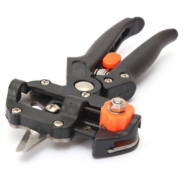 Cleste profesional de altoit 3 cutite diferite U, V, Omega Cleste pentru altoirea tip omega, V si laterala a florilor si arbustilor. Altoirea se face atunci cand se doreste ca doua sau mai multe plante diferite sa se uneasca si sa creasca ca una. Altoirea are ca scop obtinerea unui soi nou, unor seminte noi sau asigurarea ca radacina pomului se adapteaza solului sau conditiilor climatice. Marea majoritatea a pomilor fructiferi pot fi altoiti pentru a produce fructe mai mai mari, mai sanatoase sau mai gustoase. Asezati tija plantei, care trebuie sa fie altoite in suportul de taiere Apasati maneta cu putere pentru a efectua taiatura. Taietura trebuie sa fie suficienta pentru a separa cele doua parti complet Niciodata nu rupeti coaja netaiata Taiati din partea buna a plantei (altoi), o grefa cu 1-2 muguri si introduceti-l in planta gazda in sectiune, care tocmai a fost decupata Parte goala a marginii trebuie sa fie intotdeauna in planta gazda In altoi grefa trebuie sa fie de aproximativ 10 mm de la mugur Dupa ce sa montat cele doua sectiuni strans, strangeti grefa, cu o banda de rafie, hartie adeziva sau teflon. Acoperiti sfarsitul grefei cu parafina topita la o temperatura de 80 ° C sau se leaga cu materialele indicate mai sus. Cum sa schimbati lama: slabiti suruburile 1, 2 si 3 cu privire la transportul mobil desurubati suruburile 4-5 din suportul lamei. dupa ce lama a fost inlocuita, repetati operatiile de mai sus in ordine inversa. Pachetul contine: cleste pentru altoit universal 3 lame taiere U V Omega