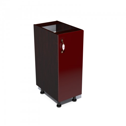 Corp inferior 30 cu 1 usa Zebra MDF rosu simplu. Dimensiuni (l x h x a): 300 x 820 x 481 mm Culoare: Wenge cu rosu. Materiale folosite: Pal melaminat, usa din MDF infoliat, maner metalic cu insertie portelan, balamale cu piston (inchidere soft close). picioare reglabile plastic 100 mm. *Nota: Schita de montaj nu se afla in interiorul coletului intre piesele de mobila. Schita de montaj o sa fie atasata pe spatele facturii.