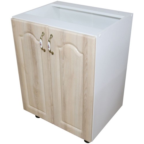 Corp inferior 60 cu 2 usi Zebra MDF sonoma mustata. Dimensiuni (l x h x a): 600 x 820 x 481 mm Culoare: Alb cu sonoma. Materiale folosite: Pal melaminat, usi din MDF infoliat, manere metalice cu insertie portelan, balamale cu piston (inchidere soft close), picioare reglabile plastic 100 mm. *Nota: Schita de montaj nu se afla in interiorul coletului intre piesele de mobila. Schita de montaj o sa fie atasata pe spatele facturii.