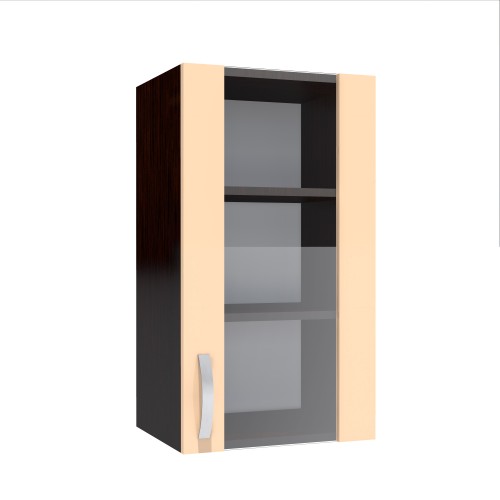 Corp superior 40 vitrina cu 1 usa Zebra cappuccino. Dimensiuni (l x h x a): 400 x 720 x 307 mm Culoare: Wenge cu cappuccino lucios. Materiale folosite: Pal melaminat, manere aluminiu, balamale cu piston (inchidere soft close). Pachetul vine cu 2 dispozitive reglabile de suspendare corpuri mobila, din metal cu plastic alb (poza). *Nota: Schita de montaj nu se afla in interiorul coletului intre piesele de mobila. Schita de montaj o sa fie atasata pe spatele facturii.