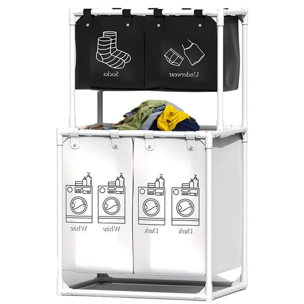 Cos de rufe cu 4 compartimente Cos de rufe din material textil cu aspect modern, cu compartimente separate. Datorita cadrului solid si capacitatii mari, poate depozita pana la cateva kilograme de haine si lenjerie de pat. Compartimentele va permit sa separati hainele de diferite culori. Dimensiune: 56 x 39 x 95 cm Greutate: 2.09 kg