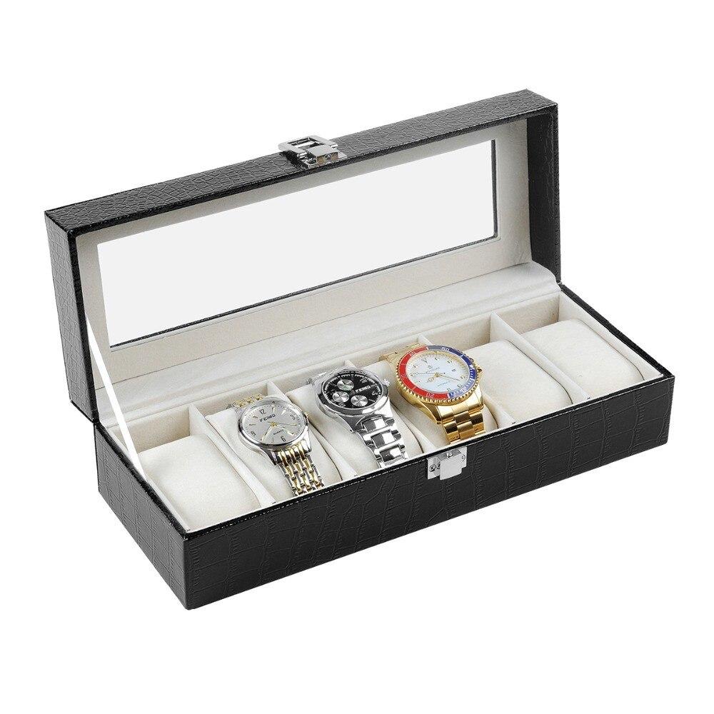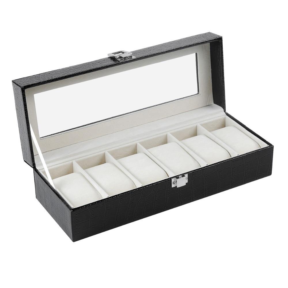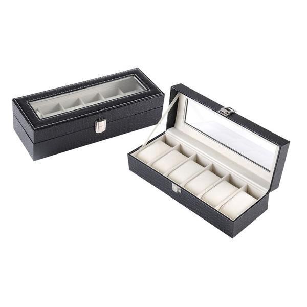 Cadou elegant inedit. Cutie depozitare 6 ceasuri de mana Culori disponibile: Negru si Rosu Un astfel de cadou va impresiona negresit un impatimit al orologiei, un colectionar care pune pret pe forma fizica a timpului. Pentru astfel de oameni, ceasurile reprezinta veritabile bijuterii, iar grija permanenta pentru pastrarea acestora in conditii optime isi va afla linistea doar atunci cand piesele de colectie isi vor afla binemeritatul loc in aceasta eleganta cutie pentru ceasuri. Cutie pentru ceasuri, foarte eleganta, din lemn acoperit cu piele ecologica. Cutia are capac care se inchide,iar in interior are suporturi speciale pentru ceasuri de mana. Un cadou practic si folositor. Culori disponibile: negru. Aceasta cutie permite pastrarea in conditii desavarsite a 6 ceasuri, in spatii bine delimitate si captusite cu catifea moale, in nuanta de crem. Exteriorul cutiei pentru ceasuri este confectionat din piele ecologica neagra, avand pe margini cusaturi fine, asortate cu culoarea matasoasei catifele, desavarsind designul elegant al intregii cutii. In plus, capacul este din geam transparent, spre a oferi admiratiei colectia de ceasuri pe care o adaposteste. Un cadou potrivit persoanelor care pun la mare pret colectia proprie de ceasuri si care se remarca prin stil ingrijit, high-class si gusturi rafinate! Fascinatia pentru instrumentele timpului, orologerie si mecanismele cu care ceasurile fine sunt echipate este impartasita si intretinuta, cu precadere, de barbatii rafinati si instariti, domni care nu duc grija zilei de maine. Nu oricine poate intelege ce simt si ce este in mintea colectionarilor pasionati atunci cand isi studiaza meticulos comoara timpului adunata de-a lungul anilor, ascultand cu rabdare ticaitul ceasurilor preferate. Valoarea bijuteriilor timpului este inestimabila pentru acesti domni, motiv pentru care un cadou ce le vizeaza nobila pasiune ii va entuziasma mai mult decat ne-am putea inchipui. Acest cadou demonstreaza respectul si consideratia purtate destinatarului, ii complimenteaza fascinatia pentru orologerie si are menirea de a oferi timpului – Timp.