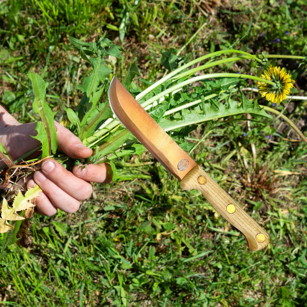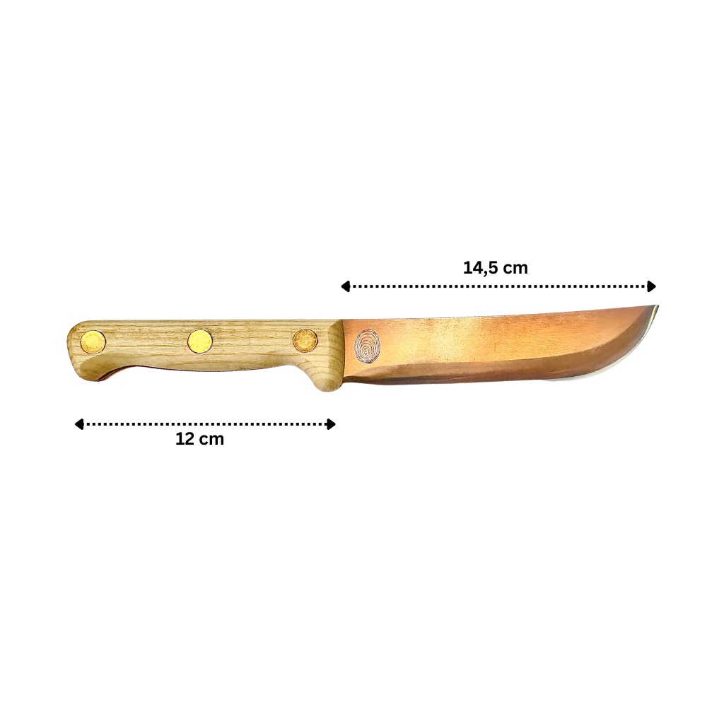 Cutitul multifunctional din cupru CuSn8 este creat pentru momentul in care bucatareala si gradinaritul se intrepatrund. Il poti folosi atat in gradina, cat si in bucatarie, pentru legume, fructe sau ierburi aromatice, cu aceeasi precizie si finete la taiere. Este o unealta gandita pentru cei care iubesc autenticitatea, lucreaza cu grija pamanul si pun pret pe calitate in fiecare gest. Lama este realizata din aliaj nobil de cupru si staniu (CuSn8), iar manerul este din lemn natural de frasin, atent slefuit pentru o priza sigura si confortabila. ✅ Functionalitate Cutit multifunctional din cupru CuSn8, pentru bucatarie si gradinarit. Ideal pentru taiat rosii direct din gradina, cules si portionat ierburi aromatice, feliat legume si fructe in bucatarie. Aliajul de cupru si staniu (CuSn8) beneficiaza de proprietatile antibacteriene naturale ale cuprului, ajutand la protejarea plantei in momentul taierii si reducand riscul de infectii si boli. La taierea fructelor si legumelor, reduce oxidarea rapida si ajuta la pastrarea prospetimii si a aspectului natural al alimentelor pentru mai mult timp. Lama versatila, potrivita atat pentru munci fine in gradina, cat si pentru sarcini zilnice in bucatarie. Durabil, ergonomic si usor de intretinut, potrivit pentru utilizare zilnica in gradinarit ecologic si bucatarie. ? Utilizare si dimensiuni Cutit de bucatarie OJ Bron, aliaj puternic de cupru (CuSn8, bronz staniu).Calitate marca UE, fabricat in Slovenia. Dimensiuni: Lungime totala: 26,5 cm Latime lama: 3 cm Greutate: 160 g Maner din lemn natural de frasin, cunoscut pentru durabilitate si elasticitate.Manerul este atent slefuit pentru o priza confortabila si sigura, chiar si la utilizare indelungata.Potrivit pentru: legume, fructe, plante aromatice, mici lucrari de gradina si pregatirea recoltelor in bucatarie. ❤️ Traditie, calitate si stil Acesta nu este un cutit obisnuit. Este o unealta vie, care poarta in ea mestesug, traditie si grija pentru detalii.Inspirat din traditiile vechilor gradinari care cunosteau puterea metalelor, dar adaptat pentru utilizatorul contemporan, cutitul din cupru CuSn8 aduce in mana ta un echilibru intre estetica si utilitate. Realizat manual dintr-un aliaj nobil de cupru si staniu (CuSn8), imbina proprietatile antibacteriene ale cuprului cu aspectul cald al bronzului. Manerul din lemn de frasin adauga o nota naturala si eleganta, echilibrand duritatea metalului cu textura calda a lemnului. Alegerea aliajului CuSn8 si a lemnului de frasin reflecta o preocupare reala pentru calitate, sustenabilitate si legatura cu natura. Cutitul multifunctional din cupru cu maner din lemn de frasin nu este doar un instrument. Este o poveste despre pasiune, respect pentru plante, pentru pamant si pentru bucataria in care ajung roadele muncii tale. Daca vrei mai mult decat un simplu produs si cauti o experienta cand tai, cureti sau recoltezi, acest cutit este o alegere foarte buna pentru tine.