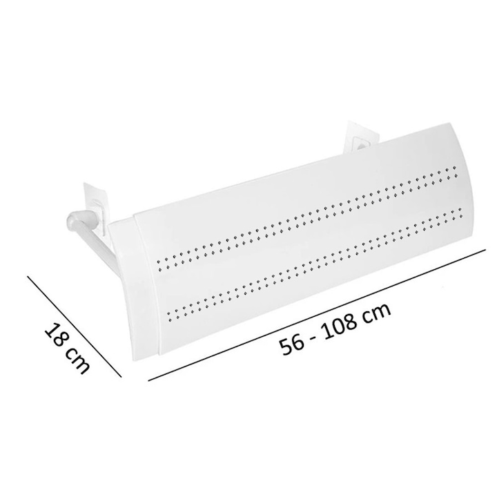 Deflector aer conditionat, protectie jet de aer rece Design ergonomic, Lungime reglabila 56 - 108 cm Produsul este un deflector pentru aerul conditionat. Este o piesa care se monteaza pe aparatul de aer conditionat si are rolul de a devia fluxul de aer. Nu functioneaza pe baterii, aparatul de aer conditionat nu este inclus. Jetul de aer din aparatul de aerul conditionat afecteaza dramatic corpurile noastre. Datorita amplasarii unitatii interioare si a mobilierului, suntem expusi zilnic la curent neplacut de aer (rece sau fierbinte), in birou, in magazin si in locuintele noastre. Unitatile interioare ale aparatului de aer conditionat au o directie limitata a jetului de aer. In majoritatea cazurilor fiind neeficienta si astfel ducand chiar la - oprirea aerului conditionat, intepenirea spatelui sau la raceala. Noi avem o solutie! Montarea usoara fara scule sau gauriri Design frumos si modern Manopera de inalta calitate Pentru unitatea interioara / aer conditionat Lungime reglabila 108 cm Nu afecteaza functionarea telecomenzii Nu afecteaza eficienta sistemului de aer conditionat Demontaj usor pentru unitatea destinata curatirii Deflector aer conditionat, lungime reglabila 56 cm - 108 cm, design ergonomic. Este usor de asamblat, are un design ergonomic pentru reglarea aerului (in sus si in jos) si este potrivit pentru acasa, birou, hotel, etc. Pachetul contine accesoriile de montaj. Suflare indirecta scalabila in sus si in jos nu afecteaza refrigerarea Poate fi fixat usor la aproape orice aer conditionat Inaltimea si directia deflectorului pot fi reglate separat Latime maxima: 108 cm Inaltime: aprox. 19 cm Material: Plastic Greutate: 400 grame Culoare: Alb Deflector Aer Conditionat, Alb Protectie Aer Rece, Lungime Reglabila 56-108 cm