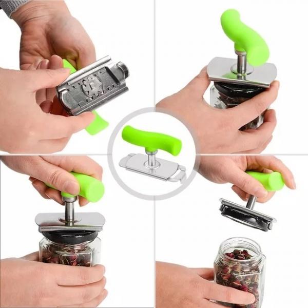 Deschizator pentru capace borcane si sticle Potrivit pentru borcane sau sticle Diametrul capacului trebuie sa aiba 3 cm - 9,5 cm Material: plastic, otel inoxidabil Dimensiuni: 10,5 x 4 cm