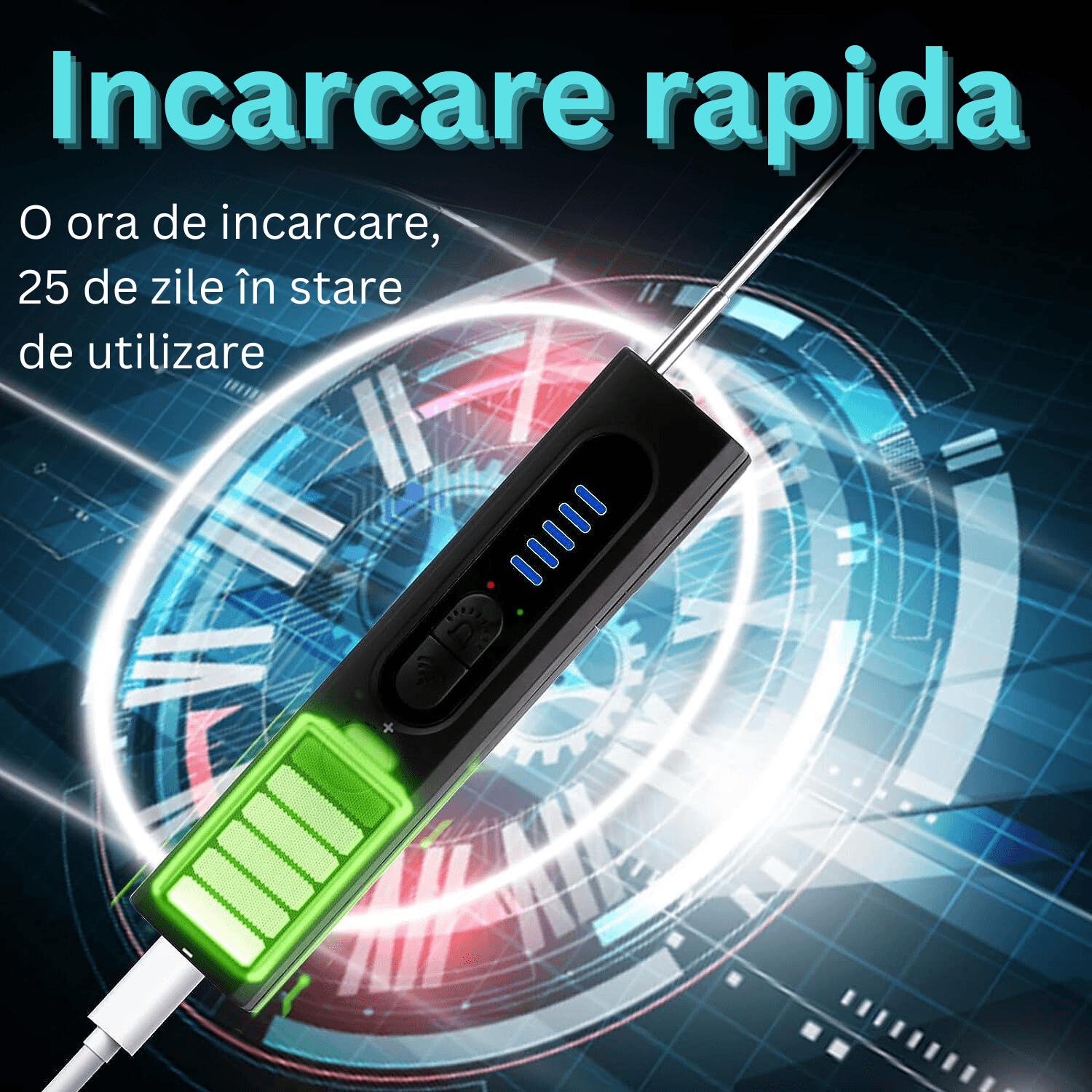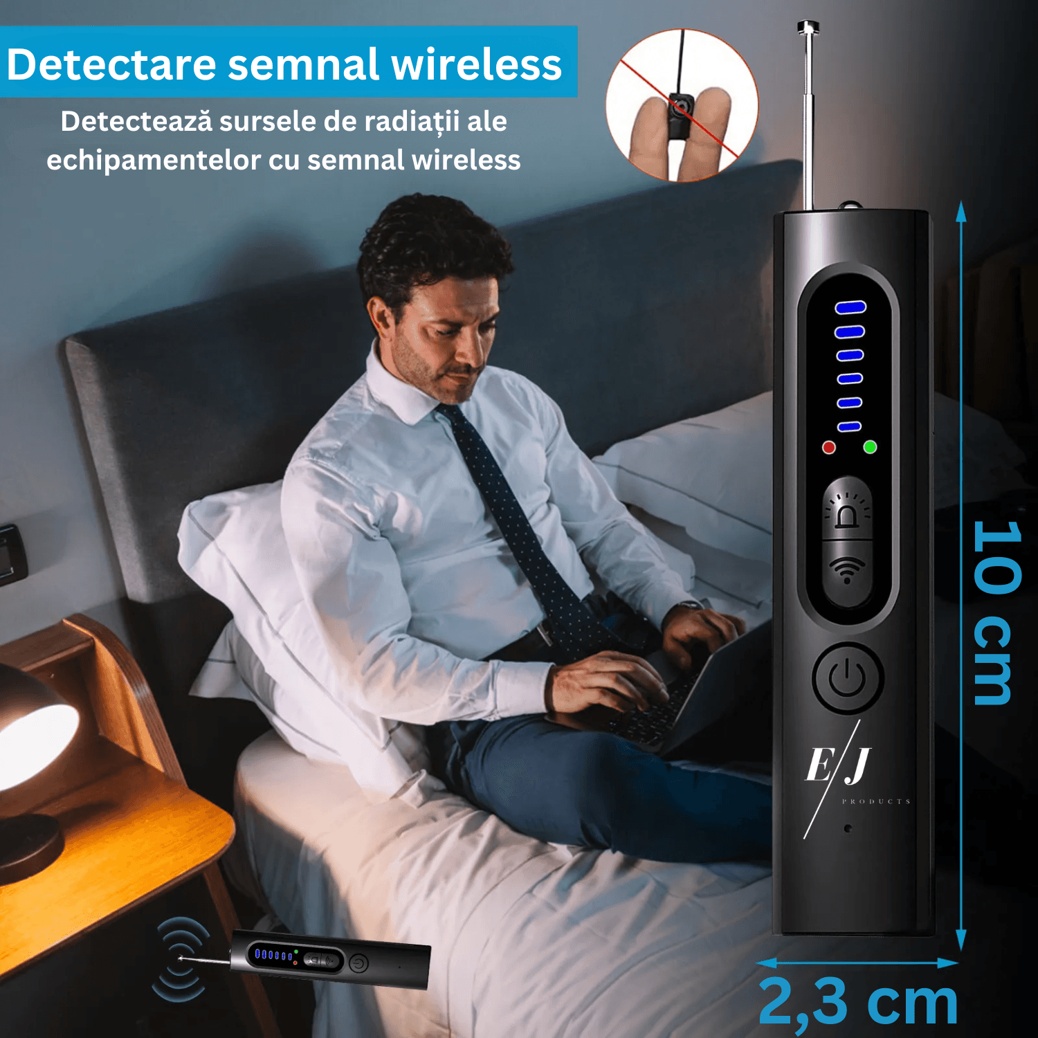 Intr-o lume in care tehnologia avanseaza rapid si intimitatea devine din ce in ce mai pretioasa, e esential sa avem mijloacele necesare pentru a ne proteja. Detectorul portabil pentru aparate anti-urmarire este instrumentul ideal pentru a detecta si a ne proteja impotriva amenintarilor nevazute. Daca va preocupati de intimitatea si securitatea dumneavoastra, acest detector portabil este un aliat de nadejde. Protejati-va impotriva amenintarilor invizibile si asigurati-va ca sunteti mereu un pas inaintea celor care ar putea incerca sa va supravegheze fara consimtamant./n/nDetector de Camere Ascunse 4 in 1 : /nDetectorul de camere ascunse Spionescu incorporeaza 4 functii :/n1. Detectarea semnalelor RF pentru a identifica transmitatoarele active RF precum camerele de transmisie, localizatoarele GPS, dispozitivele audio wireless./n2. Detector de lentile de camera pentru a identifica camerele pinhole ascunse printr-o simpla inspectie vizuala folosind scanarea cu laser infrarosu./n3. Detectarea campului magnetic pentru a identifica localizatoarele GPS magnetizate./n4. Lanterna, pentru a nu avea probleme chiar si in medii intunecate./nSiguranta Intimitatii : Acest produs foloseste o tehnica pasiva, wireless si de scanare infrarosie. Poate detecta cu precizie: dispozitive de interceptare, interceptari telefonice, interceptari in timpul intalnirilor, localizatoare GPS, interceptari auto, camere pinhole wireless, camere cu cablu, surse de radiatie electrica si multe altele. Poate preveni eficient scurgerile de informatii private./nDetecteaza Mai Multe Dispozitive : Acest detector poate identifica camere wireless 1.2G/2.4G/5.8G, camere miniaturale stealth, dispozitive audio wireless, microfoane ascunse, interceptari telefonice, dispozitive de interceptare audio-video GSM/CDMA/DECT, localizatoare GPS nedorite si multe alte dispozitive si transmitatoare. Detecteaza semnale RF in frecventa de 1MHz-8GHz./nUltra Sensibil : Cu cipuri actualizate ultra-sensibile, acest detector de camere are 6 niveluri de sensibilitate, permitandu-va sa identificati cu precizie sursa semnalului. Detectare eficienta intr-o arie de 30?./nDurabil si Usor : Usor, de dimensiuni mici, potrivit pentru diverse locuri, cum ar fi hoteluri, sali de conferinte, bai, vestiare, locuinte, birouri, locuri de examinare. Cu baterie reincarcabila integrata, dupa incarcare poate fi folosit aproximativ 30 de ore (durata depinde de modul de utilizare), fara a fi nevoie de inlocuirea bateriei. Mai convenabil de folosit si de transportat./nEste important sa cititi si sa urmati instructiunile furnizate de producator pentru a utiliza corect detectorul portabil pentru aparate anti-urmarire. Asigurati-va ca intelegeti functiile si caracteristicile dispozitivului inainte de a-l utiliza pentru a obtine cele mai bune rezultate./n/nDetector de semnal anti-urmarire Spionescu X13/n- Va ajuta sa rezolvati toate problemele legate de confidentialitate si securitate./n- Acesta are functia de detectare automata, dispozitivul principal poate fi purtat cu usurinta, iar cand intr-un mediu exista un dispozitiv de interceptare, o camera pinhole, dispozitive de inselaciune in cazinouri si altele asemenea, dispozitivul principal va alerta automat pentru a indica pericolul./nModuri de detectare: 1: Detectare prin infrarosu/n2: Detectare prin vibratie (silenta)/n3: Detectare cu buzzer/nDetectare prin infrarosu: Puteti vedea prin fereastra dispozitivului principal toate lentilele camerelor din campul vizual./nRAPIDITATE & ACURATETE PRECISA/nAcest detector wireless poate detecta rapid si precis daca masina dvs. este echipata cu un dispozitiv de interceptare magnetic/ o camera ascunsa. Poate detecta cu precizie diferite frecvente RF ale dispozitivelor de interceptare de la 1MHz la 6.5GHz pentru toate frecventele de transmisie audio si video wireless FR. (GSM/3G/4G/5G GPS tracker. wireless WiFi 2.4G/5.8G si Bluetooth.)/nBATERIE DURABILA/nDetectorul Spionescu X13 este echipat cu o baterie recarcabila de tip litiu polimer. Cu o incarcare completa de 2.5 ore, puteti folosi dispozitivul usor pentru 25 de ore. Nu va faceti griji ca bateria se va descarca atunci cand il folositi./nGAMA LARGA DE DETECTIE/nDispozitivul de detectare a semnalului are un prag ajustabil in 6 niveluri si o gama mare de detectie a frecventei care poate ajusta sensibilitatea in functie de cerinta reala. Cu cat setarea sensibilitatii este mai inalta, cu atat capacitatea de detectie este mai buna. Sursa undelor radio poate fi detectata si identificata mai rapid si mai precis, pana la 10m. (Va rugam sa activati antena inainte de utilizare)/nDetector RF multifunctional 4-in-1 /n/nInstrument de contrasupraveghere./nDetecteaza unde radio si campuri magnetice./nDetecteaza camere ascunse cu fir sau wireless./nDetecteaza scurgeri de radiatie electromagnetica de la microunde./nDe asemenea, vine cu o sonda pentru camp magnetic care poate fi folosita pentru a detecta localizatorul GPS magnetic in standby, tracker GPS, erori audio sau video ascunse instalate magnetic intr-un loc secret in vehiculul dvs./n/n/n
