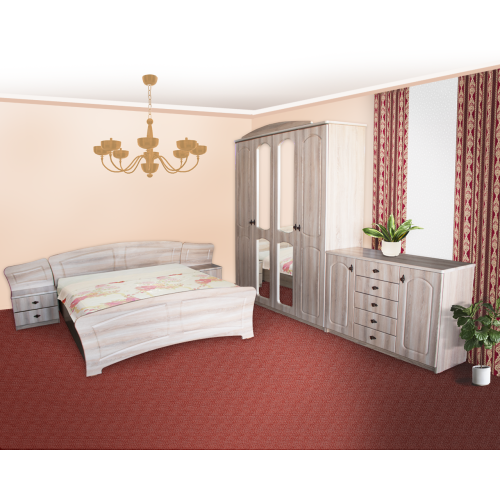 Dormitorul Roma este o alegere eleganta datorita aspectului sau clasic. Dormitorul este compus din dulap cu 4 usi, pat pentru saltea de 140x200 cm, 2 noptiere cu 2 sertare si comoda cu 2 usi si 5 sertare. Dulapul cu 4 usi, 2 pline si 2 cu oglinda, este spatios datorita dimensiunilor sale generoase de 180 cm latime, 220 cm inaltime si 55 cm adancime. Usile sunt fabricate din MDF Sonoma cu grosimea de 18 mm si sunt frezate pentru un aspect deosebit. Dulapul are 5 spatii de depozitare in partea din dreapta, iar in partea stanga are bara pentru umerase si 3 spatii de depozitare. Politele de sub bara de umerase sunt mobile si se poate renunta la ele daca se doreste depozitarea unor haine lungi pe umerase. Carcasa dulapului este fabricata din PAL Melaminat Sonoma cu cant ABS de 0,4 mm grosime, iar ornamentele de deasupra usilor sunt fabrica din MDF Sonoma cu grosimea de 25 mm pentru un aspect clasic al dulapului. Manerele sunt metalice si au un aspect vintage. Patul pentru saltea 140x200 cm este fabricat integral din MDF Sonoma cu grosimea de 25 mm si impreuna cu ornamentele care vin peste noptiere fabricate de asemenea din MDF Sonoma cu grosimea de 25 mm formeaza un pat matrimonial elegant cu o latime totala la perete de 260 cm. Lungimea patului este de 206 cm, iar inaltimea maxima a tabliei este de 86 cm. Somiera metalica fixa este inclusa si ofera un suport foarte rezistent pentru orice tip de saltea. Cele 2 noptiere au cate 2 sertare foarte practice si impreuna cu ornamentele patului sub care se monteaza noptierele formeaza un ansamblu foarte elegant. Fetele de sertar sunt fabricate din MDF Sonoma cu grosimea de 18 mm, iar capacul este fabricat din MDF Sonoma cu grosimea de 25 mm pentru un aspect deosebit si rezistent. Latimea unei noptiere este de 50 cm, inaltimea este de 42 cm si adancimea este de 39 cm. Manerele sunt metalice si au un aspect vintage. Comoda este foarte spatioasa si practica datorita multiplelor spatii de depozitare. Comoda are 2 usi cu cate 3 rafturi fiecare si 5 sertare. Usile si fetele de sertar sunt fabricare din MDF Sonoma cu grosimea de 18 mm, iar capacul este fabricat din MDF Sonoma cu grosimea de 25 mm pentru un aspect deosebit si o rezistenta sporita in timp la obiecte grele depozitate pe ea. Carcasa este fabricata din PAL Melaminat sonoma cu grosimea de 16 mm cu cant ABS cu grosimea de 0.4 mm. Latimea comodei este de 130 cm, inaltimea este de 88 cm, iar adancimea este de 44 cm. Manerele sunt metalice si au un aspect vintage. Salteaua nu este inclusa. *Nota: Schita de montaj nu se afla in interiorul coletului intre piesele de mobila. Schita de montaj o sa fie atasata pe spatele facturii.