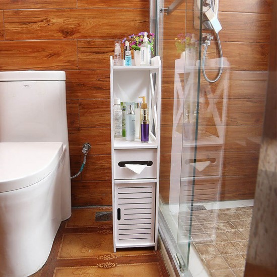 Dulap vertical din lemn pentru baie, Alb Lungime x Latime x Inaltime: 22 x 20 x 80 cm Acest dulap de baie elegant, din lemn, va deveni un punct de atractie in baia dumneavoastra. Dulapul independent de podea are un finisaj alb si va fi o solutie excelenta de depozitare pentru toate accesoriile dumneavoastra de baie, precum ghivece de flori si produse cosmetice. Dulapul de calitate superioara este prevazut cu un compartiment de depozitare cu 2 usi si 3 rafturi superioare. Este usor de curatat si de intretinut. Este foarte usor de asamblat. Culoare disponibila: Alb - lemn