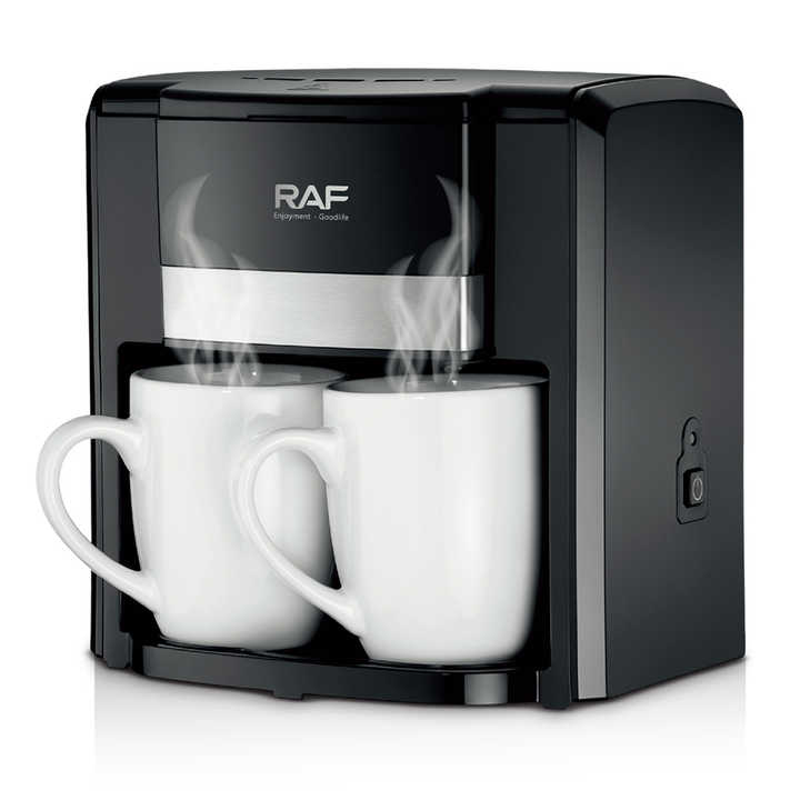 Espressor cafea, 2 cani simultan, RAF 420 ml Include si cele 2 cani pentru cafea Acest aparat iti va permite sa prepari prepari cafea exact cum iti place folosind lingurita pentru dozare venita la pachet in unul dintre cele 2 moduri de preparare: normala sau lenta. Aparatul iti va permite sa prepari pana la 2 cesti de cafea proaspata in acelasi timp, in timp ce senzorul inteligent previne umplerea excesiva a recipientului pentru cafea. Aparatul te va atentiona sonor, cat si prin indicatorul luminos atunci cand cafeaua ta este gata pentru a fi servita. Caracteristici: Espressor cafea RAF 420 ml Culoare: negru Preparati 2 cafele simultan Sistem avertizare sonora si luminoasa Recipient cafea antipicurare Accesoriu: lingurita pentru dozarea cafelei Voltaj: 220 V Frecventa: 50/60Hz Putere maxima: 800 W Protectie supraincalzire Include si 2 cani Tip de cafea folosita: Macinata; Material: Plastic Filtru: detasabil, reutilizabil Element de incalzire: otel inoxidabil Lungime cablu de alimentare: 0,8 m Alimentare: Retea 220-240 V, 50-60 Hz Dimensiuni (HxLxD): 19 x 19 x 15 cm