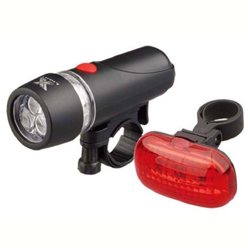 Far si stop bicicleta 5 LED Atat lanterna cat si stopul de bicicleta se monteaza pe ghidonul bicicletei cu ajutorul unui colier. Utilizarea elementelor reflectorizante la bicicleta pe timpul noptii este recomandata si chiar ceruta de autoritati ca o masura de siguranta. Studiile arata o corelare intre coliziuni si lipsa dotarii cu elemente reflectorizante. Far si stop bicicleta 5 Leduri Montare usoara Colier: 25.4-31.8 mm Mod de lucru far: 2 functii lumina alba (continuu/flicker alb) Mod de lucru avertizor: 5 functii (lumina rosie) Nr. LED-uri far: 5 Nr. LED-uri avertizor: 5 Baterii far: 3xAAA (nu sunt incluse) Baterii avertizor: 2xAAA (nu sunt incluse)