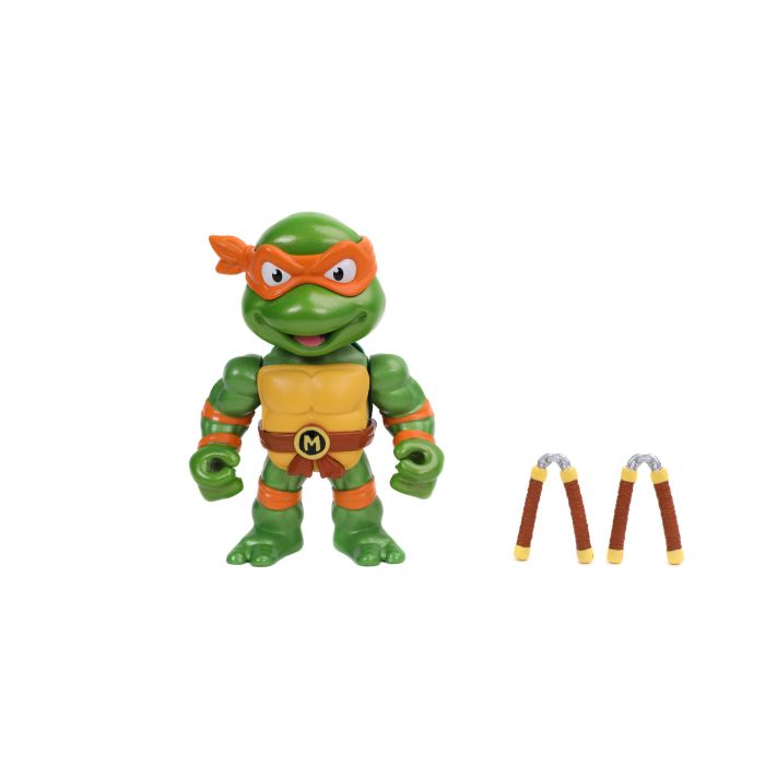 Figurina Michelangelo, personajul din seria Testoasele Ninja, este prezent acum si sub forma de figurina metalica realizata la un grad inalt de calitate. Figurina are o inaltime de 10 cm si are incluse si accesoriile eroului. Are si articulatii si poate executa diferite miscari si pozitii.
